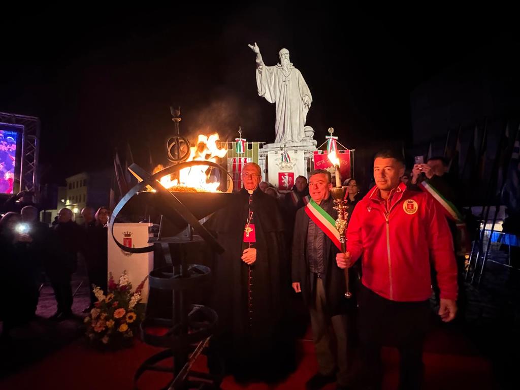 “L’arrivo della fiaccola benedettina – ha dichiarato Boccanera – ogni anno ci offre un’occasione preziosa: quella di fermarci, riflettere e interrogarci sul tempo che stiamo vivendo. Non è una cerimonia che si esaurisce nella forma, non è un evento che si limita alla tradizione, piuttosto è un momento in cui una comunità si guarda dentro e si misura con la propria capacità di comprendere la realtà, di interpretarla e di assumersi delle responsabilità, e oggi purtroppo è una realtà complessa. La fiaccola ha il significato, come San Benedetto ci ha insegnato, di portare un messaggio di pace e dobbiamo lavorare perché questo possa essere realizzato”.