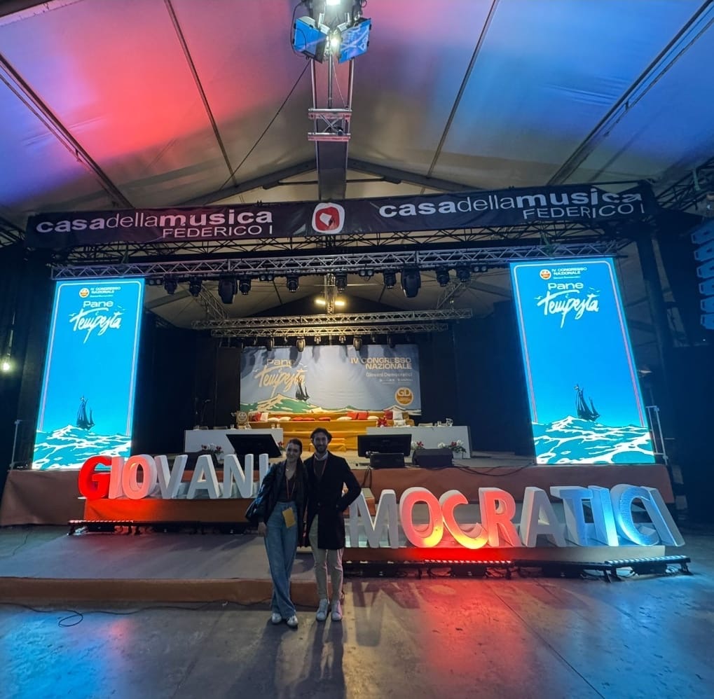 Il titolo scelto per il Congresso, “Pane e tempesta” – citazione dal romanzo di Stefano Benni – ha rappresentato un messaggio di speranza e, allo stesso tempo, un invito a rimboccarsi le maniche dopo anni complessi per le nuove generazioni. A rappresentare i Giovani Democratici di Gubbio sono stati Elena Tomarelli e Alessandro Gambini, che, insieme al resto della delegazione umbra, hanno partecipato a un intenso dibattito con oltre cento interventi tra delegati, esponenti del partito, rappresentanti della società civile e del mondo dell’associazionismo. Tra gli ospiti più rilevanti, anche figure della politica internazionale come l’ex premier della Nuova Zelanda Jacinda Ardern, intervenuta in collegamento dalla COP30 di Belém. Presenti inoltre Roberto Fico e Piero De Luca, insieme al presidente della Regione Campania Vincenzo De Luca, che con la loro partecipazione hanno restituito l’immagine di una coalizione forte, credibile e coesa. Applausi anche per gli interventi della segretaria del PD Elly Schlein e del presidente del partito Stefano Bonaccini, oltre che per la toccante testimonianza dei rappresentanti del PD nella Global Sumud Flotilla – il deputato Arturo Scotto, l’europarlamentare Annalisa Corrado e il consigliere regionale lombardo Paolo Romano, giovane militante GD.