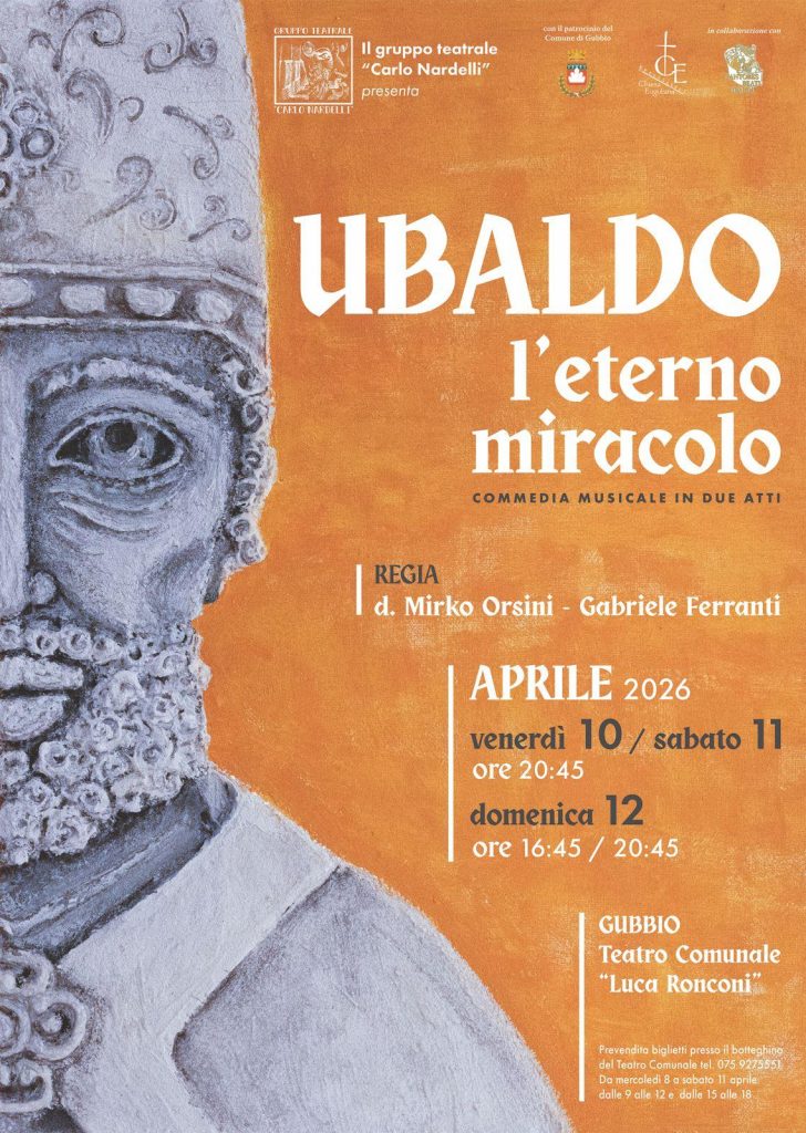 A Gubbio torna “Ubaldo, l’eterno miracolo”, la commedia musicale in due atti che racconta la vita del patrono sant’Ubaldo e il legame profondo che unisce la città alla sua figura. Non si tratta soltanto di una ripresa, ma di un vero e proprio nuovo allestimento, capace di rinnovarsi pur restando fedele alla sua anima originaria. Lo spettacolo, già rappresentato nel 2003 e nel 2011, viene oggi riproposto dal gruppo teatrale “Carlo Nardelli” con il patrocinio della Diocesi e del Comune di Gubbio e la collaborazione del coro Cantores Beati Ubaldi. Un progetto che si inserisce nel solco di quelle esperienze artistiche in cui il teatro diventa linguaggio condiviso, capace di raccontare una storia collettiva fatta di fede, tradizione e appartenenza. La regia di don Mirko Orsini e Gabriele Ferranti guida uno spettacolo che si sviluppa come un affresco narrativo, attraversando i momenti più significativi della vita di sant’Ubaldo: dalla fanciullezza fino alla morte, passando per il rapporto con la città e per quel passaggio simbolico e spirituale che la tradizione eugubina riconosce nella nascita della Festa dei Ceri. Come racconta il vicario diocesano don Mirko Orsini, "è uno spettacolo interamente scritto da noi, a quattro mani da me e Carlo Nardelli e musicato da tutti i ragazzi dello spettacolo", un lavoro che nasce quindi da una dimensione profondamente condivisa e partecipata. "È un lavoro pienamente corale che vuole rendere ancora una volta omaggio al nostro indiscusso amato patrono sant’Ubaldo", spiega, sottolineando il valore identitario del progetto. Le rappresentazioni sono in programma nel fine settimana al Teatro “Ronconi”, con debutto venerdì 10 aprile alle ore 20:45, replica sabato 11 aprile allo stesso orario e doppio appuntamento domenica 12 aprile, nel pomeriggio e in serata. La prevendita è attiva da mercoledì 8 aprile presso il botteghino del teatro (ore 9–12 e 15–18.