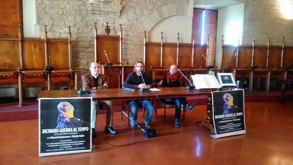 Si è tenuta questa mattina presso la Sala Consiliare del Comune di Gubbio la conferenza stampa per la presentazione dell'evento teatrale “Dichiaro Guerra al tempo” che andrà in scena domenica 15 gennaio 2017 alle ore 21 al teatro comunale 'L. Ronconi'.