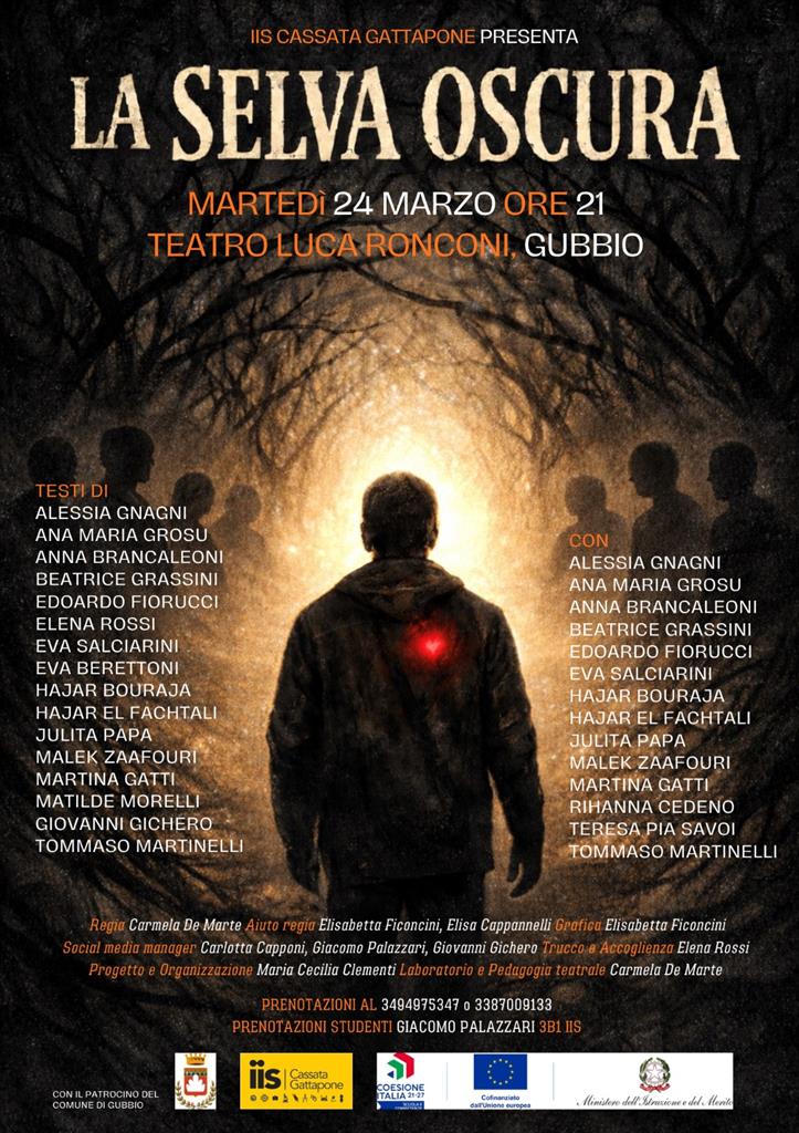 Si terrà Martedì 24 Marzo alle ore 21 presso il Teatro Comunale Luca Ronconi di Gubbio, il saggio spettacolo “La Selva oscura” esito del laboratorio teatrale “All’Inferno” tenuto all’IIS Cassata Gattapone di Gubbio. Ideatrice e tutor del laboratorio la professoressa Maria Cecilia Clementi, insegnante di lettere dello stesso istituto, coadiuvata dall’attrice e operatrice di teatro educazione Carmela De Marte che ne ha curato anche la regia. Protagonisti dell’evento 20 tra ragazzi e ragazze frequentanti i diversi indirizzi dell’IIS di Gubbio. I partecipanti e le partecipanti hanno frequentato per circa quattro mesi, da novembre 2025 a marzo 2026, il laboratorio extra scolastico mettendosi in gioco e sperimentandosi nello scoprire la relazione, con se stessi e con l’altro da sé, come elemento fondante non solo l’arte teatrale, ma la vita in generale. Il lavoro in sala è stato incentrato dalle due guide e prendendo spunto dai canti più conosciuti dell’Inferno di Dante Alighieri, sull’esplorazione della selva oscura che ogni individuo si trova inevitabilmente, e più volte, ad attraversare nel corso della vita.