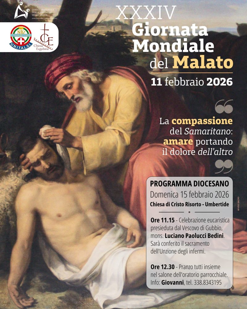 La trentaquattresima Giornata mondiale del malato, che si celebra l’11 febbraio, offre anche quest’anno un’occasione preziosa di riflessione e di preghiera per tutta la comunità ecclesiale, richiamando il valore della compassione come forma concreta di amore. Il tema proposto, ispirato alla parabola evangelica del buon samaritano, invita a riconoscere – nel prendersi cura del dolore dell’altro – una via autentica di testimonianza cristiana, capace di tradursi in gesti semplici ma profondi di prossimità e solidarietà. In questo clima spirituale si inserisce il programma diocesano promosso dalla Chiesa eugubina, che domenica 15 febbraio 2026 si riunirà nella chiesa di Cristo Risorto a Umbertide. La mattinata sarà scandita dalla celebrazione eucaristica presieduta – alle ore 11.15 – dal vescovo di Gubbio e di Città di Castello, mons. Luciano Paolucci Bedini, durante la quale sarà conferito il sacramento dell’Unzione degli infermi, segno di consolazione e di speranza per quanti vivono l’esperienza della malattia. La giornata proseguirà con un momento conviviale nel salone dell’oratorio parrocchiale, favorendo l’incontro e la condivisione tra i partecipanti. Dalla riflessione sulla sofferenza e sulla cura nasce anche il desiderio di ringraziamento e di affidamento, che troverà espressione nel pellegrinaggio a Lourdes in programma nel luglio 2026. Le diocesi di Gubbio e di Città di Castello, insieme ai volontari dell’Unitalsi delle sottosezioni e gruppi umbri, si metteranno in cammino verso il santuario mariano, luogo da sempre legato alla preghiera per i malati e alla speranza di guarigione nel corpo e nello spirito. Il pellegrinaggio rappresenta molto più di un semplice viaggio: è un’esperienza ecclesiale condivisa, vissuta accanto ai più fragili, nel segno del servizio e dell’amore gratuito. Il viaggio potrà essere effettuato sia in treno (dal 19 al 25 luglio) sia in aereo (dal 18 al 24 luglio), con partenza da Perugia, offrendo a molti la possibilità di prendere parte a un’esperienza che unisce preghiera, fraternità e servizio. Per informazioni e iscrizioni al pellegrinaggio: Giacomo, tel. 3280151680 (Gubbio); Maria Teresa, tel. 3477001563 (Città di Castello); Giovanni, tel. 3388343195 (Umbertide). La partecipazione del vescovo Paolucci Bedini sottolinea il valore unitario di questo cammino, che vede coinvolte le comunità diocesane e l’Unitalsi in una testimonianza corale di fede. Il viaggio offre a molti la possibilità di prendere parte a un’esperienza che unisce preghiera, fraternità e servizio. Lourdes diventa così la naturale continuazione di quanto vissuto nella Giornata del malato: un segno concreto di quella compassione che, accolta e celebrata, si trasforma in scelta di vita e in cammino condiviso.