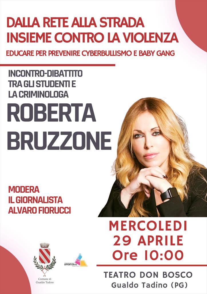 “Dalla Rete alla Strada, insieme contro la violenza – Educare per prevenire cyberbullismo e baby gang” è il titolo dell’iniziativa che si svolgerà mercoledì 29 aprile alle ore 10 presso il Teatro Don Bosco. Un appuntamento di grande rilevanza per il territorio, promosso dal Comune di Gualdo Tadino nell’ambito delle attività della Commissione per le Pari Opportunità, nato con la collaborazione del gualdese Roberto Carlotti, con l’obiettivo di rafforzare la consapevolezza sui fenomeni della violenza giovanile, sia online che offline. Protagonista dell’incontro sarà la criminologa e psicologa investigativa Roberta Bruzzone, che dialogherà con il giornalista Alvaro Fiorucci, esperto di cronaca nera e giudiziaria, coinvolgendo attivamente gli studenti dell’Istituto Comprensivo e dell’Istituto Casimiri su tematiche di stringente attualità: dai meccanismi psicologici e sociali che alimentano comportamenti violenti, alla violenza di genere, fino ai fenomeni del bullismo e del cyberbullismo. All’iniziativa prenderanno parte il Sindaco di Gualdo Tadino e Presidente della Provincia di Perugia, Massimiliano Presciutti, l’Assessore al Welfare, all’istruzione, alla cultura e Politiche Giovanili, Gabriele Bazzucchi, le forze dell’ordine e i dirigenti scolastici degli istituti gualdesi, a testimonianza dell’impegno condiviso delle istituzioni nel contrasto a fenomeni che incidono profondamente sul tessuto sociale. “Questo incontro rappresenta un’occasione importante per la nostra comunità – sottolinea il Sindaco Massimiliano Presciutti – perché affronta con strumenti concreti e con il contributo di una professionista autorevole come Roberta Bruzzone ed un giornalista esperto sull’argomento come Alvaro Fiorucci, temi che riguardano da vicino i nostri giovani. Educare i nostri giovani alla consapevolezza, al rispetto e alla responsabilità è il primo passo per prevenire fenomeni di violenza e bullismo e costruire una società più sicura e coesa. Come amministrazione comunale continueremo ad investire in iniziative, di alto livello come questa, che coinvolgano e facciano dialogare direttamente studenti, famiglie e istituzioni”. L’appuntamento al Teatro Don Bosco di Gualdo Tadino si propone di rappresentare un momento di alto valore educativo e civico, volto a fornire ai ragazzi strumenti utili per riconoscere, prevenire e contrastare i fenomeni di violenza, favorendo al tempo stesso una cultura del rispetto e della legalità. Roberta Bruzzone, dialogando con il giornalista Alvaro Fiorucci, guiderà il dibattito offrendo chiavi di lettura approfondite sui processi che portano alla formazione di gruppi violenti e sulle dinamiche del cyberbullismo. Per garantire la più ampia partecipazione possibile, sarà allestita anche una sala adiacente al Teatro Don Bosco. L’evento sarà inoltre trasmesso in diretta sulla pagina Facebook del Comune di Gualdo Tadino, consentendo di estendere ulteriormente la platea e favorire una diffusione capillare dei contenuti trattati. “La sfida contro il bullismo e la violenza di ogni tipologia - afferma l’Assessore comunale al Welfare, all’istruzione, alla cultura e alle Politiche Giovanili, Gabriele Bazzucchi - si vince solo uscendo dall'indifferenza e mettendo a disposizione della comunità strumenti culturali. Mettere i nostri ragazzi a confronto diretto con professionisti di assoluta valenza come la dottoressa Roberta Bruzzone significa offrire loro un’occasione di ascolto e di acquisizione di competenze sia dal punto di vista psicologico che sociale per affrontare i rischi del presente. Non stiamo solo organizzando un evento, stiamo costruendo uno scudo culturale: vogliamo che la nostra società, ed in particolare i giovani di Gualdo Tadino, siano protagonisti attivi di una comunità basata sulla legalità, capaci di riconoscere un pericolo prima che diventi un danno e di scegliere sempre il rispetto al posto del sopruso”.