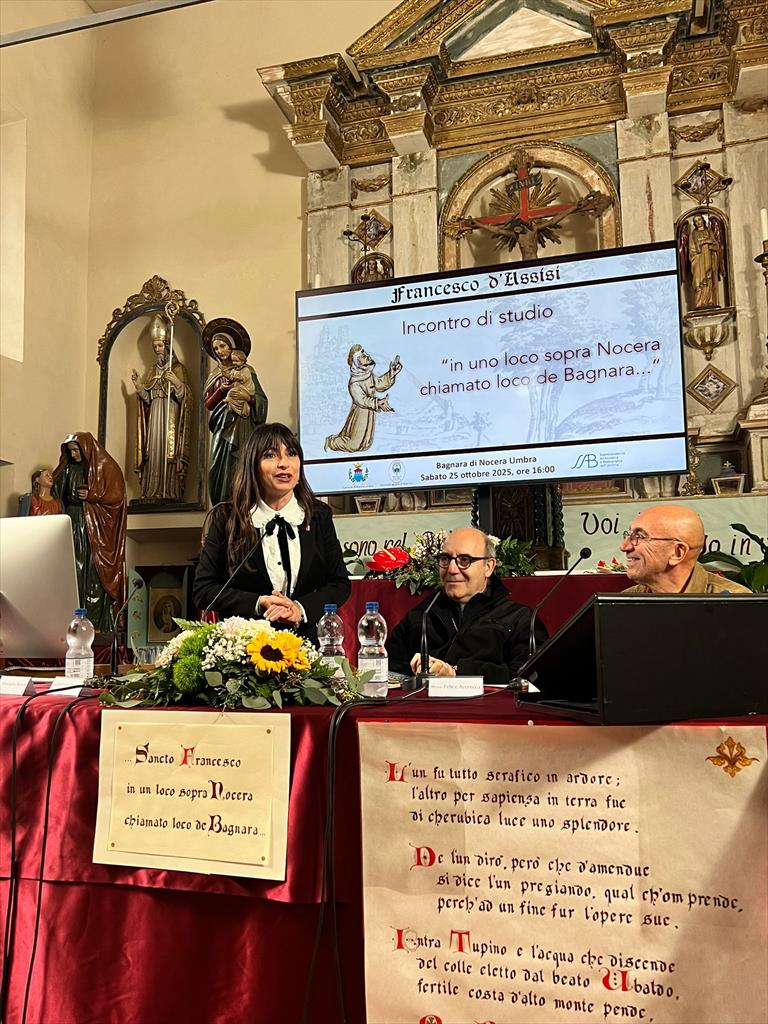 "Non far cadere nell'oblio uno dei momenti più importanti della nostra storia": è nella frase pronunciata dal presidente dell'Università agraria di Bagnara, Lorenzo Perticoni, il senso del convegno di studio "Francesco d'Assisi - in un loco sopra Nocera chiamato loco de Bagnara", svoltosi a Bagnara di Nocera Umbra. Organizzato dall'Università agraria di Bagnara e dalla Società dei condomini, con la collaborazione del Comune di Nocera Umbra e della Sovrintendenza archivistica e bibliografica dell'Umbria, ha raccolto tra i massimi esperti della storia di San Francesco, con l'obiettivo di mettere a fuoco la vocazione francescana del territorio, dove il Santo morente andò a trascorrere gli ultimi giorni di vita, alla vigilia dell'Ottocentenario francescano. Tra gli ospiti anche la presidente della Regione, Stefania Proietti. A moderare il giornalista Rai Alessandro Gaeta. "San Francesco - ha detto Perticoni - è stato più volte a Nocera, anche alla luce del rapporto con San Rinaldo. Facciamo dunque tesoro della nostra storia e valorizziamola". "Siamo in presenza di un territorio difficile e penalizzato - ha detto il presidente della Società dei Condomini, Gianfranco Buffi - e per questo dobbiamo lavorare affinché questa contingenza possa essere un'occasione". Di "unità di intenti" ha parlato il sindaco Virginio Caparvi in relazione alla valorizzazione del territorio in senso francescano. "Io starò vicina a Nocera in tutto e per tutto. Vogliamo essere il collettore di tanti eventi" ha sottolineato Proietti. Tra gli intervenuti - si legge in un comunicato degli organizzatori - Alessandro Bianchi, la Soprintendente Laura Bonomi Ponzi, che ha ripercorso la storia della Grotta dell'Angelo, il vescovo di Benevento, monsignor Felice Accrocca, uno dei massimi esperti della storia di San Francesco. Il presule ha ricordato quanto siano importanti le aree interne: "Non possiamo lasciarle morire, come ho detto al presidente della Repubblica Sergio Mattarella". Quindi il racconto degli ultimi giorni del Santo e di quanto il corpo, come una reliquia, fosse conteso. Il convegno è stato un passaggio degli appuntamenti che la Comunanza agraria ha in programma per celebrare l'Ottocentenario francescano e tra gli obiettivi c'è quello di realizzare un cammino che dalla Grotta dell'Angelo possa congiungersi ad Assisi, attraversando tutte le altre località francescane del territorio nocerino.