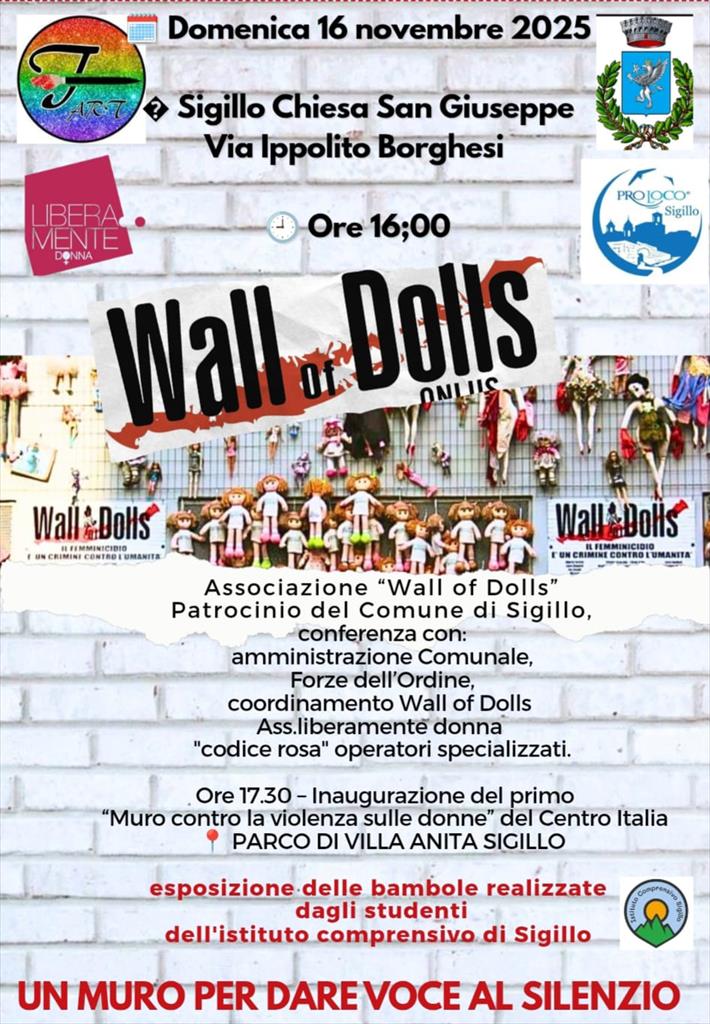 Il “Wall of Dolls” di Sigillo rappresenta il primo muro dedicato nel Centro Italia, realizzato in collaborazione con l’Associazione Wall of Dolls, fondata da Jo Squillo e Francesca Carollo. Nella giornata di lunedì 17 novembre presso l'Istituto Cavour Marconi Pascal di Perugia ci sarà la medesima iniziativa con conferenza e inaugurazione del muro presso il CPA di Ponte San Giovanni. Con l’inaugurazione del primo Muro delle Bambole, simbolo universale di protesta contro la violenza sulle donne e segno concreto di solidarietà verso le vittime, i Comuni di Sigillo e Perugia rinnovano il proprio impegno nella promozione di una cultura fondata sul rispetto, sull’ascolto e sulla parità di genere. La realizzazione congiunta del Muro delle Bambole nei due territori testimonia la volontà di unire le forze per contrastare ogni forma di violenza e discriminazione, facendo dell’Umbria una regione simbolo di sensibilità, consapevolezza e impegno civile nella difesa dei diritti delle donne. L’associazione FantasyArt rinnova così il proprio impegno alle tematiche sociali, in sinergia con le istituzioni e le realtà associative del territorio.