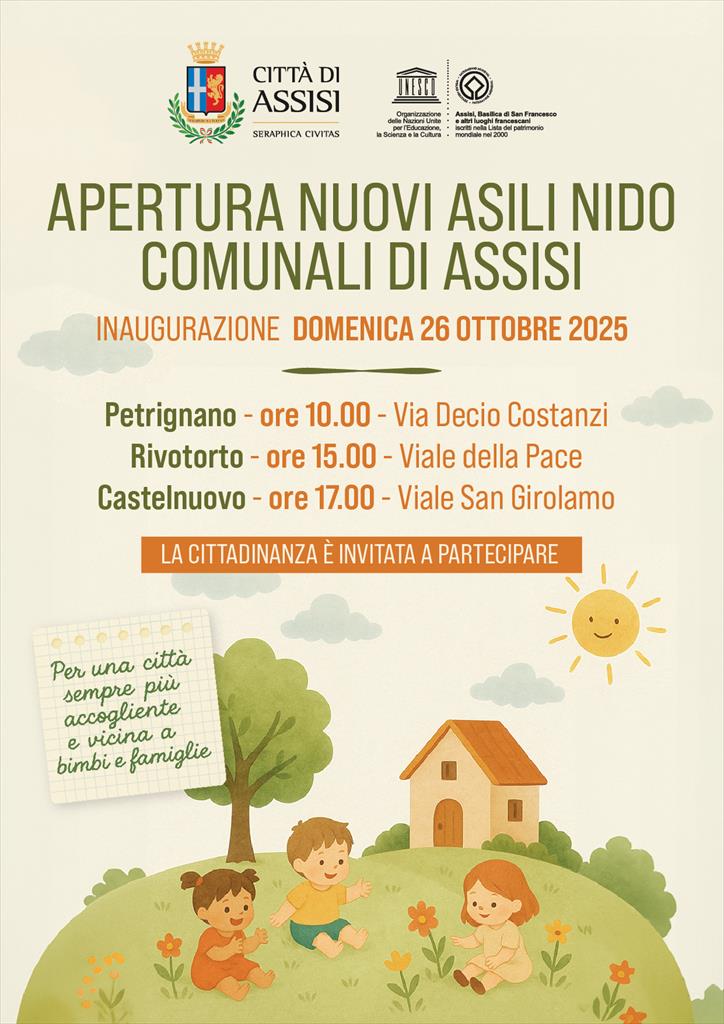 Saranno inaugurati il 26 ottobre e attivi dal 3 novembre i tre nuovi nidi comunali d'infanzia di Assisi, realizzati a Castelnuovo, Petrignano e Rivotorto. Si tratta di strutture pubbliche in grado di accogliere fino a 135 bambi fra 0 e 3 anni, costruiti con fondi del Piano nazionale ripresa e resilienza, per un importo complessivo di circa 3,8 milioni di euro, intercettati grazie a bandi a cui ha partecipato il Comune di Assisi, che ha poi investito ulteriori 500mila euro di risorse proprie. A Petrignano - riferisce il Comune - la struttura si trova in via Decio Costanzi e l'inaugurazione è prevista domenica alle 10. È stata realizzata in esito a demolizione e ricostruzione della sede della Pro loco, che verrà realizzata nella stessa area, proprio davanti al nuovo nido. È ampia circa 450 metri quadrati, divisi in quattro zone dedicate alle attività didattiche, ludiche e di servizio, come mensa e riposo. Sono presenti due aree giochi attrezzate, una in un atrio interno e una nel giardino. Arredi e sistemazioni esterne sono state acquistati con fondi comunali pari a circa 140mila euro. A Rivotorto il nido si trova in viale della Pace e sarà inaugurato alle 15. Si tratta dell'edificio più grande, in grado di accogliere fino a 60 bambini, divisi in tre sezioni, a seconda della fascia di età. Ognuna ha un'aula didattica, uno spazio per le attività ludiche e il riposo, mentre l'area mensa è unica per tutti. La struttura, di 650 metri quadrati, è stata costruita da nuovo per un importo di circa 1,4 milioni di euro, oltre a 170mila euro per arredamento e sistemazioni esterne. A Castelnuovo l'asilo è in viale San Girolamo e l'inaugurazione è in programma alle 17. Si tratta di una nuova costruzione a seguito di demolizione di una vecchia struttura, per un investimento di circa 1,2 milioni di euro, oltre a 120mila euro di risorse comunali per arredi e finiture. L'edificio è di 500 metri quadrati, con visuale su Assisi. Ha reception, aula insegnanti, lavanderia, deposito passeggini. La parte centrale è suddivisa in spazi dedicati ad attività didattiche, ludiche e speciali, con area mensa, riposo e ampio giardino con giochi. Tutti i nuovi nidi comunali d'infanzia sono dotati di un giardino zen, interno o esterno, che combina diversi elementi naturali per creare un ambiente accogliente, sereno e armonico, utile a stimolare la creatività e l'equilibrio dei piccoli. La realizzazione dei tre nuovi asili ha comportato anche la riqualificazione delle aree verdi limitrofe, che sono rimaste tutte pubbliche. I servizi socioeducativi saranno svolti da "Aldia cooperativa sociale," che si è aggiudicata la gestione. Ai tre momenti inaugurali di domenica interverranno rappresentanti della Giunta comunale, tecnici, progettisti, personale educativo e sarà l'occasione per visitare le tre nuove strutture, che saranno effettivamente in funzione dal 3 novembre prossimo. Le tre nuove realtà si aggiungono al primo nido pubblico della città "Maria Luisa Cimino", attivo a Santa Maria degli Angeli dal 2021, con l'obiettivo di promuovere una città sempre più accogliente e vicina ai bisogni di bimbi e famiglie.