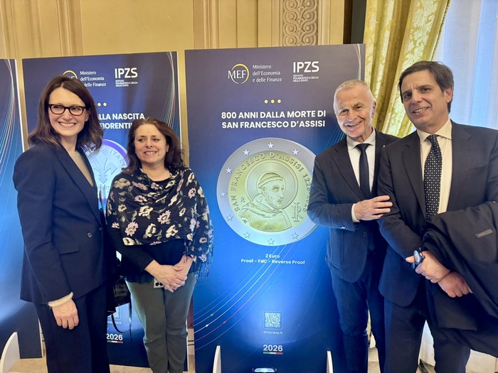 Anche una moneta dedicata a San Francesco, nella Collezione Numismatica 2026 della Repubblica Italiana che è stata presentata ieri al Mef, a Roma. Presente all'evento anche il Comune di Assisi, che esprime la sua gratitudine. All'incontro hanno partecipato il sindaco, Valter Stoppini, e rappresentanti della diocesi. La Collezione Numismatica 2026 racconta, attraverso la moneta, la storia, i valori e le eccellenze dell'Italia. Comprende emissioni dedicate a grandi protagonisti della cultura italiana, a ricorrenze civili di rilievo nazionale e a simboli dell'identità storica e produttiva del Paese. Tra le novità più significative figurano le prime monete da 2 euro Reverse Proof, tra cui una dedicata agli 800 anni dalla morte di San Francesco d'Assisi, patrono d'Italia, la cui ricorrenza tornerà a essere festa nazionale a partire da quest'anno e al quale è dedicata anche un'emissione da 0,75 euro in rame. "La figura di San Francesco oltrepassa i secoli e continua a parlare allumanità con parole semplici e profondissime", ha dichiarato il sindaco di Assisi, Stoppini, in una nota dell'ente. "Accogliamo con sincera gratitudine questo riconoscimento, convinti che la memoria di San Francesco rappresenti un patrimonio universale capace di unire culture e territori. Le monete a lui dedicate nascono da un percorso condiviso, frutto della collaborazione tra Comune, diocesi e Famiglie francescane, e testimoniano come i valori francescani continuino a ispirare lumanità. È un momento che ci riempie di orgoglio, unico nella storia della nostra città". Le monete dedicate a San Francesco saranno presentate prossimamente anche ad Assisi, offrendo alla città l'opportunità di celebrare direttamente l'eredità universale del Santo e di condividere con il mondo i suoi valori di pace e dialogo.