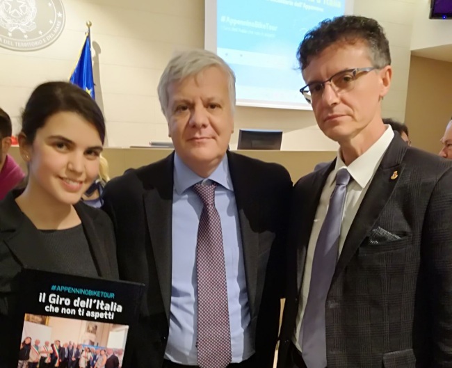 Presentato oggi al Ministero dell'Ambiente a Roma il libro #Appennino Bike Tour e il Piano 2018-20, che ha quale obiettivo la creazione della più grande Ciclo-Via d'Italia lungo le strade secondarie dell'Appennino. Assisi, rappresentata dall'Assessore allo Sport Veronica Cavallucci e dal Consigliere Giuseppe Cardinali, sarà la quarta tappa del giro 2018, che prenderà il via il 4 Aprile da Altare per terminare, dopo aver attraversato l'Italia da nord a sud, il 14 Aprile ad Alia. L'edizione 2018 vedrà in sella il campione italiano Ultracyclist Omar Di Felice, che la città di Assisi avrà il piacere di ospitare il 7 Aprile, giorno di tappa. Presente all’evento di questa mattina il Ministro dell’Ambiente Gian Luca Galletti, che ha ricordato come solo insieme, sarà possibile realizzare la più grande Ciclo-Via, alla scoperta di una Italia inedita. “Un progetto di grandissimo valore –spiega l’Assessore allo Sport Veronica Cavallucci – nel quale abbiamo creduto sin da subito, perché parte dalla messa in rete dei territori e delle ricchezze naturalistiche italiane. L’idea è quella di valorizzare strade secondarie che possano diventare mèta di un nuovo turismo per Assisi: sostenibile e capace di valorizzare l’immenso patrimonio naturale e paesaggistico delle nostre colline. A questo progetto se ne affiancano altri di grande valore sui quali questa Amministrazione sta lavorando da tempo e che riguardano i cammini a piedi o a cavallo per invitare a scoprire i nostri territori in modi nuovi e sostenibili”.