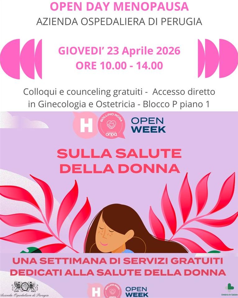 In occasione dell'11/a Giornata nazionale della salute della donna - "Open Week", promossa da Fondazione Onda e rivolta agli ospedali con Bollino rosa, l'Umbria aderisce con una settimana di iniziative gratuite dedicate al benessere femminile. L'Azienda ospedaliera di Perugia pone l'attenzione alla donna in menopausa, definita una fase naturale della vita che richiede ascolto, prevenzione e un supporto specialistico mirato. Giovedì 23 aprile, dalle ore 10 alle 14, open day interamente dedicato a questo tema presso gli ambulatori di Ostetricia e Ginecologia (blocco P primo piano). Le donne ultracinquantenni potranno accedere liberamente, senza necessità di prenotazione, per ricevere consulenze gratuite e personalizzate. L'obiettivo dell'Azienda ospedaliera è offrire un punto di riferimento concreto e immediato per affrontare i cambiamenti fisici ed emotivi legati a questa fase della vita. Durante la giornata sarà possibile usufruire di colloqui informativi e counseling multidisciplinari grazie alla presenza di un team di specialisti composto da ginecologi, ostetriche, urologi, senologi, nutrizionisti e psicologi, che lavoreranno in sinergia per fornire indicazioni su prevenzione, screening gratuiti, diagnosi precoce e qualità della vita in menopausa. Per il Santa Maria della Misericordia l'iniziativa rappresenta un'importante occasione per promuovere la cultura della prevenzione e garantire un accesso semplice e diretto ai servizi sanitari, mettendo al centro i bisogni specifici delle donne in questa delicata fase.