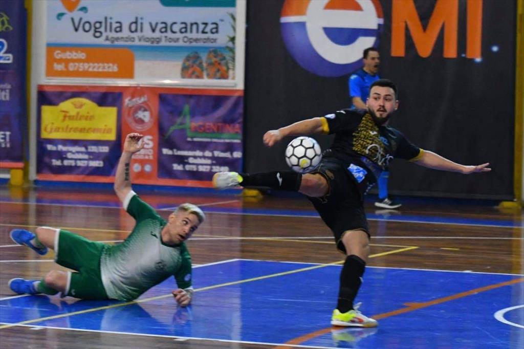 Calcio a 5, Serie B: nella diciassettisima di campionato la Vis Gubbio batte 4-3 alla Polivalente Cus Ancona per tre punti che permettono ai rossoblù di staccare la formazione marchigiana(che era a pari punti con gli eugubini) e di sostare ora in seconda piaza solitaria a due punti dal Prato capolista (che ha battuto 1-5 Lastrigiana in trasferta). Per il quintetto di Betteli reti siglate da Martella, Wagner Leite (in photogallery) e doppietta di Di Fonzo (in photogallery).