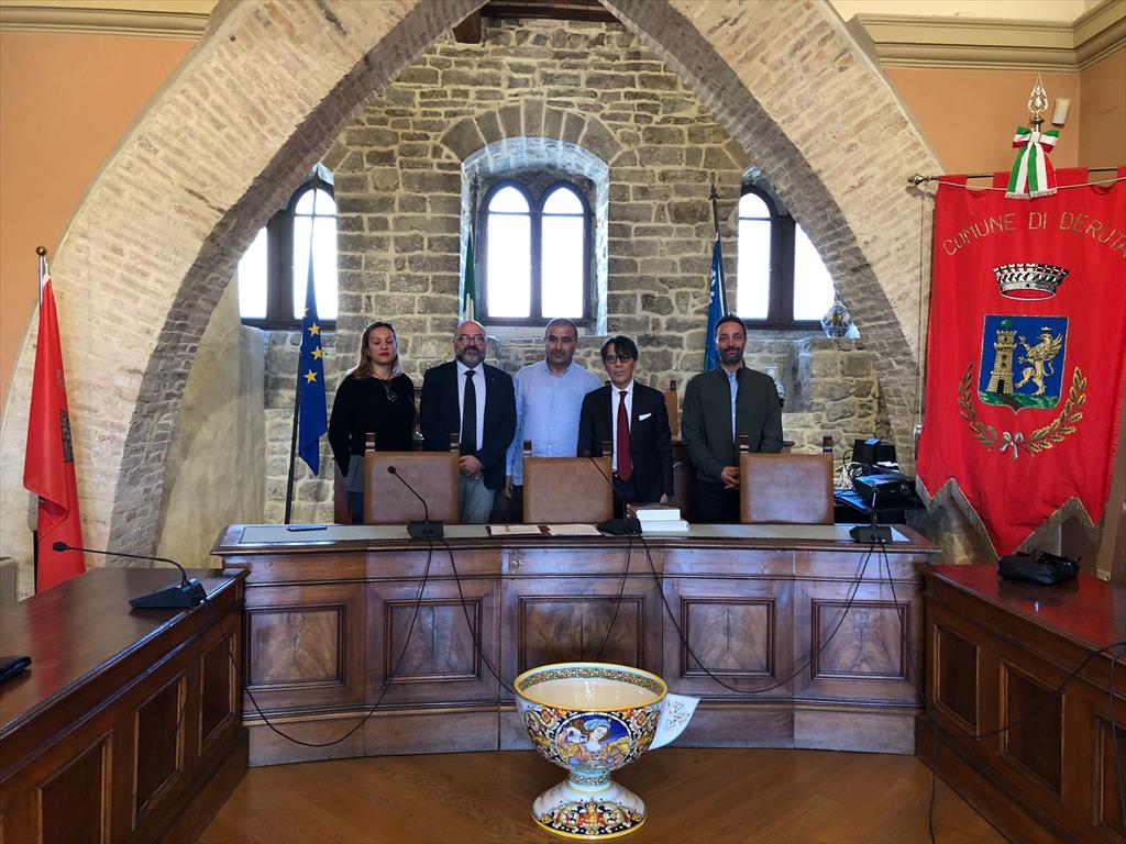 E’ stata ricevuta, dall’Assessore alla Cultura e del Turismo Piero Montagnoli, nella sala Consiliare del comune di Deruta, la delazione del Ministero Tunisino dell’Artigianato. L’incontro scaturisce dal progetto di cooperazione internazionale finanziato dalla cooperazione Italiana che ha come finalità quella di condividere le esperienze italiane sui temi dell’innovazione e gestione del settore della Ceramica. A promuovere l’iniziativa è stato l’artista derutese Nicola Boccini già da tempo impegnato in attività di formazione e assistenza tecnica ad aziende tunisine che operano nel settore della ceramica/poterie. Dopo i saluti e lo scambio di doni la delegazione è stata accompagnata in visita al Museo Regionale della ceramica dove ad accoglierla c’era il conservatore del Museo Prof. Giulio Busti. “La nostra storia legata alla ceramica è conosciuta in tutto il mondo – ha dichiarato Montagnoli. Per noi è importante sapere che Deruta e le sue maestranze sono considerata un centro formativo per altri paesi, basta ammirare queste opere d’arte per cogliere ispirazione e spunto e arricchire il proprio bagaglio di saperi”.