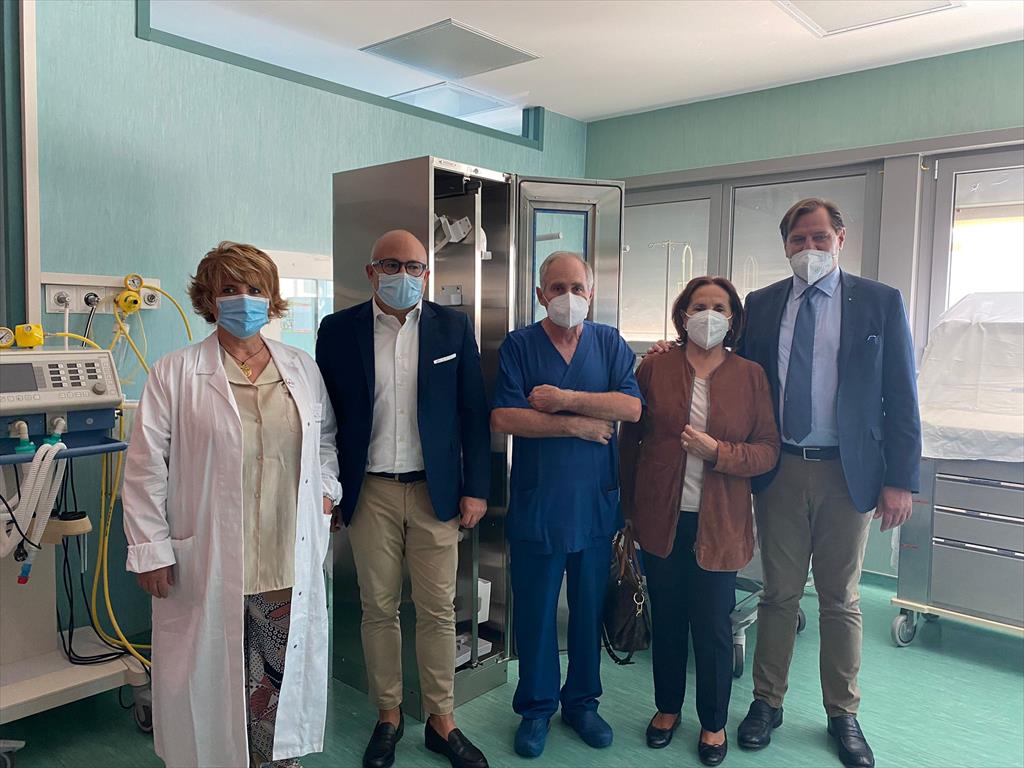 A ricevere lo strumento, insieme alla direttrice dell'ospedale comprensoriale Teresa Tedesco, il primario di rianimazione Teseo Lazzarini.