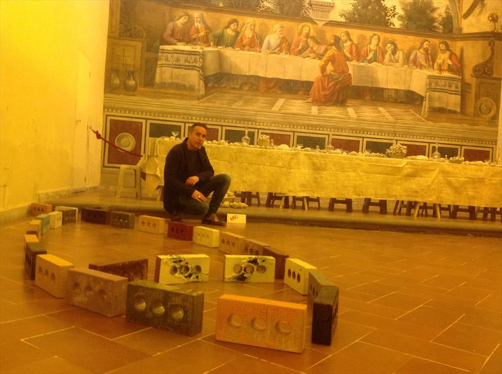 Pierluigi Monsignori in mostra con “il pesce di contro corrente” nel Cenacolo di Ognissanti e con un elemento di “Plastic Food”, presso Monteripoli, grazie ad Artour-o, format dell'architetto Tiziana Leopizzi. L'artista di Umbertide, Pierluigi Monsignori, continua a viaggiare offrendo, attraverso le sue opere, una serie di proposte di riflessione sulla vita e i valori umani. Valori, sempre attuali e rinnovati, che, anche oggi, possono essere trasmessi attraverso l'arte, un'arte che realmente non è mai morta, o quantomeno ancora detentrice di una forza mai spenta. Il pesce di Controcorrente è posto ai piedi dell'Ultima Cena dipinta dal Ghirlandaio. I suoi elementi, 13 mattoni che compongono due mezze lune a formare un “pesce”, riprendono i valori simbolici propri della fede cattolica: pesce (IXTYS) simbolo cristologico; al suo interno la branchia, disegnata con 3 mattoni, rappresentante la Trinità. Ogni mattone vuole volutamente, quanto simbolicamente rappresentare un apostolo e Gesù. Il posizionamento trasversale nell’angolo del pavimento, quasi vuol indicare il posto della pietra angolare su cui poggia la costruzione a sua volta simbolo di qualsiasi costruzione personale o sociale: dimensione morale, famiglia, lavoro, arte. I simboli, soprattutto nel passato, erano molto più importanti di oggi, nella vita di tutti i giorni, occupavano ampi spazzi sia della vita privata che religiosa, e il pesce fin dagli albori è stato impregnato di significati densi. Valori che compenetrano il sacro e il profano, valori che hanno gettato le fondamenta di quella civiltà che iniziata con il messaggio del Cristo e fino ad oggi vitale e valida. L'artista ha installato volutamente il suo pesce con la coda che parte da sotto il cenacolo e si muove spostando i valori verso la società moderna, che troppo spesso li dimentica e distorce portandoli ad una deriva: la deriva della massificazione, del consumo smodato, dell’abuso… delle ideologie devianti. Ecco allora la necessità oggi più che mai di un moto “contro corrente”, nonostante faticoso è necessario per riappropriarsi di una precisa identità. Gli Apostoli dell'ultima Cena, divengono come i mattoni fondamento del nostro essere cristiani, e cittadini di un mondo tutt’ora in grado di diffondere i valori evangelici per una società migliore. L'installazione, come la sua riflessione, non vuol esser di natura confessionale, ma vuol partire dall’oggettiva importanza umana e sociale della proposta evangelica per arrivare a suggerire uno stile rinnovato di vita. Vuol offrire quell'opportunità pedagogica e comunicativa, propria dell’arte. L’immortalità pedagogica dell’arte, anche in questo caso propone lo sforzo troppo spesso incompreso o soffocato dalla stanchezza di una modernità liquida, attraverso la quale il pesce nuota andando contro corrente, di ritrovare una direzione, delle certezze, dei fini precisi di condotta e di vita. Valori rivolti all'ecologia, come allo spreco di sentimenti, di valori di umanità, sono rappresentati dall'altra installazione di Plastic Food Project. La piccola pressa di lattine riciclate, indica come il valore dell'umanità oggi sia fondato sul denaro e su uno spreco che non ha senso. Un cammino da fare, dunque, ripetiamo non strettamente confessionale, ma un cammino di tutti: delle famiglie, dei genitori, come dei figli. Attraverso un filo sottile di speranze, Pierluigi Monsignori lega alle sue opere lallo sconcertante del presente, grazie alla sua immediatezza espressiva, Plastic Food Project è infatti un mattone fondamentale del progetto europeo UUD Erasmus+, teso proprio a questo scopo. Insomma due opere che non sono di facile lettura, ma si che si prestano alla critica provocatorie nella loro semplicità e ricche nel loro significato.