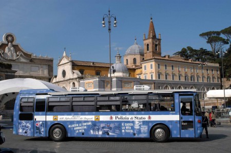 E' partito oggi da Perugia il progetto regionale "Guida la vita" con il pullman azzurro della Polizia