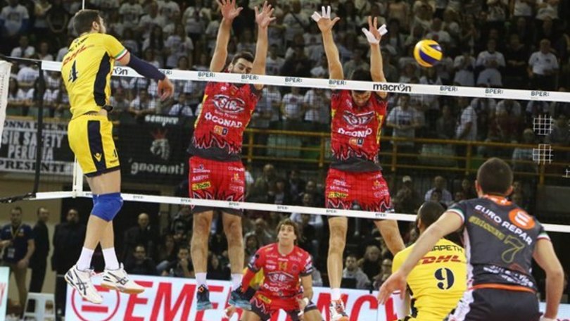 Finale scudetto Superlega: niente da fare in gara 1 per la Sir Perugia, Modena vince 3-0. Match combattuto solo nel terzo set (27/25). primi due parziali dominati dagli emiliani. Giovedi' gara 2 al PalaEvangelisti.