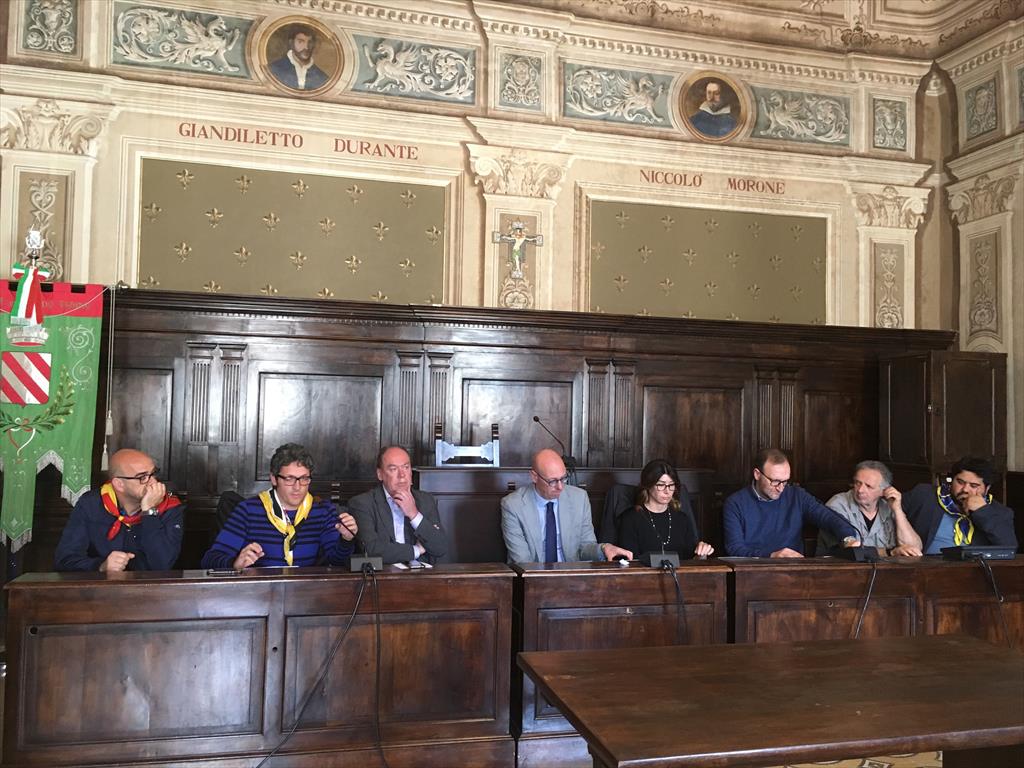 Alla conferenza di questa mattina nella Sala Consiliare del Comune di Gualdo Tadino sono presenti il Sindaco della città Massimiliano Presciutti, l’Avv. Chiara Bigioni Responsabile investimenti e sviluppo di Rocchetta Spa, il Presidente dell’Ente Giochi Paolo Campioni, il Gonfaloniere nonché Priore di Porta San Facondino Mario Pasquarelli e i Priori Roberto Cambiotti di Porta San Donato, Andrea Farinacci Porta San Martino e Nicola Bossi di Porta San Benedetto.