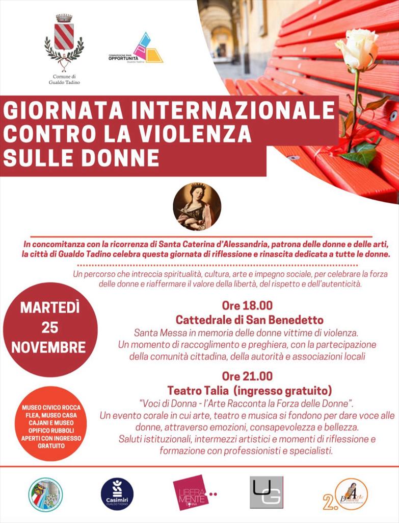 In occasione della Giornata Internazionale contro la Violenza sulle Donne, l’Amministrazione Comunale di Gualdo Tadino e la Commissione Pari Opportunità locale invitano tutta la cittadinanza a partecipare alle iniziative organizzate per martedì 25 novembre 2025, una giornata dedicata alla riflessione, alla sensibilizzazione e alla promozione di una cultura del rispetto e della non violenza verso le donne.