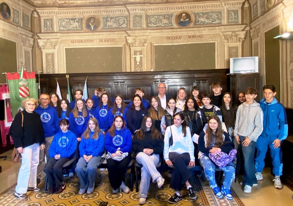 Nella giornata di lunedi 13 Ottobre, gli studenti francesi del Lycèe J. Hyppolite di Jonzac (comune situato nel dipartimento della Charente Marittima nella regione di Nuova Aquitania non lontano da Bordeaux) e del Liceo e dell’indirizzo tecnico grafico del “Casimiri” di Gualdo Tadino, accompagnati dalle docenti Elisa Benedetti, Martina Fanini ed Eleonora Scassellati hanno visitato il Municipio di Gualdo Tadino per un incontro con il sindaco Massimiliano Presciutti. L’incontro, svoltosi nella Sala Consiliare, ha rappresentato un momento significativo di scambio culturale tra le due scuole. I 12 studenti francesi del Lycée J. Hyppolite di Jonzac, sono ospitati in questi giorni da dodici studenti del Liceo e dell’indirizzo tecnico grafico gualdese. L’iniziativa è nata da una collaborazione con l’USR Umbria ed è coordinata dalle docenti di lingua francese Elisa Benedetti e Martina Fanini. Il progetto, che fa parte dell’accreditamento Erasmus+ 2024/2027, avrà un seguito all’inizio del nuovo anno, quando sarà la volta degli studenti dell’istituto “Casimiri” essere ospitati dai coetanei francesi, grazie ad uno scambio che si svolgerà dal 25 gennaio al 1° febbraio 2026. Il “Casimiri” di Gualdo Tadino si conferma così istituto scolastico di alto livello sempre più internazionale. Grazie all’accreditamento Erasmus+ 2024/2027, anche quest’anno si annuncia ricco di esperienze formative per studenti e docenti, nell’ambito di programmi che promuovono la mobilità all’estero e l’accoglienza di giovani provenienti da altri Paesi. Il sindaco Massimiliano Presciutti ha voluto sottolineare l’importanza di questi scambi interculturali e di avere in città una scuola a vocazione europea: “Il Progetto Accreditamento Erasmus+ 2021-2027 rappresenta una straordinaria opportunità di crescita per i nostri studenti, permettendo loro di ampliare i propri orizzonti e di entrare in contatto con altre culture europee. E’ molto importante avere a Gualdo Tadino un istituto all’avanguardia che incentivi scambi ed esperienze internazionali per i nostri giovani”. Dopo l’incontro in Municipio, gli studenti francesi nei prossimi giorni proseguiranno la loro esperienza con una serie di attività che li porteranno a visitare anche le bellezze storiche e culturali della regione, tra cui Assisi, Perugia e Gubbio.