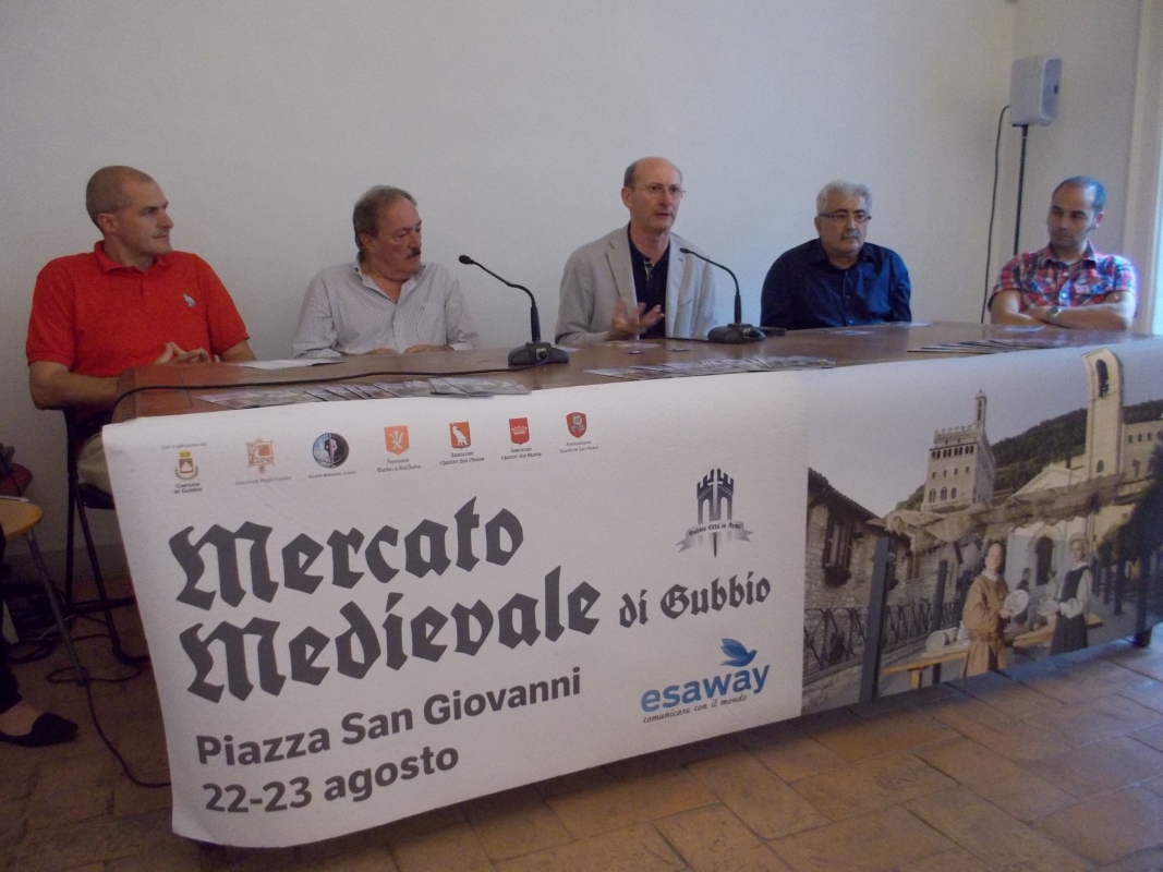 Tutto è pronto per la I edizione del “Mercato Medievale di Gubbio”, che si terrà in piazza S. Giovanni oggi sabato 22 e domani domenica 23 agosto, con orario continuato dalle 10 alle 22. L’iniziativa è promossa dal neonato ‘Ente Torneo dei Quartieri’ che per questa prima edizione ha affidato al Quartiere di S. Giuliano l’organizzazione e la logistica, e che comunque comprende oltre allo stesso Comune, anche S. Pietro, Sant’Andrea e S. Martino, nonché il ‘Maggio Eugubino’ e la ‘Società Balestrieri’. «Stiamo mettendo a sistema, anche con questa iniziativa del ‘Mercato Medievale’ risorse ed energie per creare un ‘circolo virtuoso’ di relazioni, riportando vitalità ed iniziative nel Centro Storico – ha sottolineato nella conferenza di presentazione il sindaco di Gubbio, Stirati. Con uno sguardo all'evento di fine settembre quando debutterà anche il primo Festival del Medioevo. E così dalle ore 10 di oggi Piazza San Giovanni e' trasformata in una tipica piazza del borgo medioevale, dove viene riproposto lo scenario caratteristico dell'epoca, con banchi in legno, dame, cavalieri, armati ed artigiani e le varie eccellenze dell’artigianato, della produzione agricola e alimentare a km zero del territorio eugubino e inoltre un’osteria medievale dove poter assaggiare le varie prelibatezze. All’interno del mercato vige una moneta autonoma, l’Eugubino, suddiviso in cinque quattrini e il banco di cambio proporrà un’atmosfera coinvolgente della Gubbio medioevale, insieme ai giochi di una volta che verranno riproposti in spazi all’interno della piazza. «Elemento fondamentale è quello della promozione dell’evento – ha rimarcato in conferenza Francesco Pascolini, presidente del Quartiere S.Giuliano – oltre alla distribuzione di depliant effettuata su un’area vasta dell’Alta Umbria e del versante marchigiano, agli spazi su media locali, ci sarà anche la pagina facebook e il sito www.mercatomedievaledigubbio.it , realtà virtuale che diventerà il caposaldo tutto l’anno ». Di seguito il programma. Sabato 22 agosto: ore 10 - Lettura del bando di apertura del mercato da parte dell’Araldo; ore 10.30 - Apertura spazi dedicati a i giochi di una volta…(giochi aperti ai visitatori del mercato); ore 11.30 - Corteo storico per le vie del mercato; ore 12 - Esibizione del Gruppo Sbandieratori; ore 18.30 - Corteo storico per le vie adiacenti il mercato; ore 19 - Elezione del Priore (rievocazione in costume) in piazza San Giovanni; ore 19.30 - Chiusura spazi dedicati a i giochi di una volta…: ore 22 - Lettura del bando di chiusura del mercato da parte dell’Araldo. Domenica 23 agosto: ore 9.30 - Cerimonia di benedizione del Mercato Medievale di Gubbio; ore 10 - Lettura del bando di apertura del mercato da parte dell’Araldo; ore 10.30 - Apertura spazi dedicati a i giochi di una volta… (giochi aperti ai visitatori del mercato); ore 11.30 - Corteo storico per le vie del mercato; ore 12 - Esibizione del Gruppo Sbandieratori di Gubbio; ore 17.30 / 18.00 - Transito in piazza San Giovanni del corteo storico della Società Balestrieri Gubbio; ore 18.30 - Corteo storico per le vie adiacenti il mercato; ore 19 - Elezione del Priore (rievocazione in costume) in piazza San Giovanni; ore 19.30 - Chiusura spazi dedicati ai giochi di una volta…; ore 22 - Lettura del bando di chiusura del mercato da parte dell’Araldo.