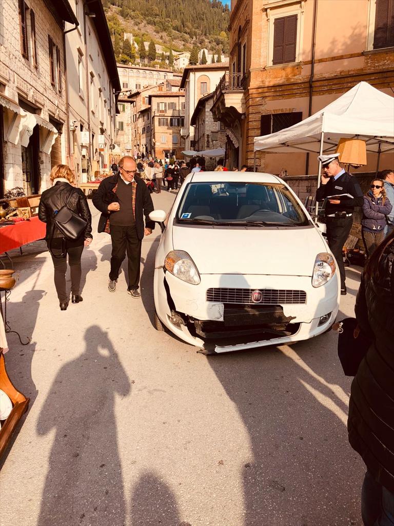 Attimi di paura se nin di terrore ieri pomeriggio nel centro storico di Gubbio. A causare l'inatteso incidente un'auto "impazzita" che salendo da via Porta Romana ha imboccato Corso Garibaldi dopo aver urtato una vettura in sosta in via Dante, proseguendo la sua corsa incurante delle transenne metalliche di chiusura della ZTL: ne ha abbattute ben due lasciando per strada perfino pezzi metallici e la stessa targa per poi giungere ai piedi del Corso e imboccare via della Repubblica in discesa. Sembrava quasi che alla guida non ci fosse nessuno quando ha finito la sua corsa su una bancarella della Mostra dell'antiquariato allestita tra la via e piazza 40 martiri. Un esercente ha fatto appena in tempo a scansarsi per non essere investito anche se è uscito leggermente ferito.