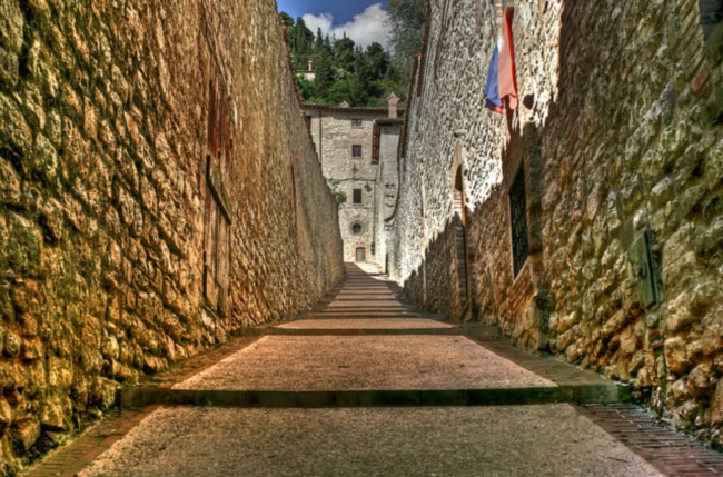 C'e' anche un cartello con la segnalazione di pericolo a mettere in guardia i pedoni all'imbocco di via Colomboni a Gubbio, meglio noto come “primo buchetto”. Infatti la strada e' interessata dalla caduta di alcuni coppi dai tetti.