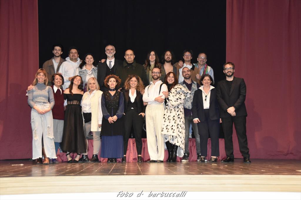 La Compagnia Teatro della Fama di Gubbio si distingue ancora una volta nel panorama del teatro amatoriale italiano conquistando due prestigiosi premi, e una ulteriore nomination di rilievo, alla finale nazionale del Gran Premio del Teatro Amatoriale FITA 2025, che si è svolta a Ponte a Moriano di Lucca, dove è approdata per rappresentare l’Umbria con lo spettacolo 'Amleto nel bel mezzo di un gelido inverno', per la regia di Riccardo Tordoni, confermando il valore artistico e la maturità del percorso intrapreso negli ultimi anni. La giuria nazionale ha assegnato al Teatro della Fama il premio come Miglior Allestimento Scenico, riconoscendo la qualità di una proposta capace di far dialogare linguaggio visivo, drammaturgia e struttura del testo. L’impianto scenico, costruito su due piani temporali, ha colpito per essenzialità, coerenza e forza evocativa, insieme all’uso dinamico dei tendaggi e del piccolo palco interno, restituendo lo spirito del “teatro nel teatro” al centro della visione artistica dello spettacolo. Il premio per il Miglior Allestimento Scenico è un riconoscimento speciale che la Compagnia dedica con gratitudine a chi lo ha reso possibile: Luca Berettoni, ideatore dell’allestimento, macchinista straordinario capace di trasformare visione e tecnica in poesia scenica; Francesco Berettoni, che ha realizzato e montato l’intera struttura con cura, precisione e una sensibilità rara per lo spazio teatrale; Michele Cimarossa, tecnico luci, che ha dato profondità e ritmo allo spettacolo con un lavoro raffinato e intelligentemente calibrato. A loro va questo premio: un riconoscimento al talento, alla professionalità e alla dedizione che hanno reso Amleto un dispositivo scenico vivo, fluido, evocativo. Un ringraziamento speciale va anche a Michele Fondacci, batterista, la cui musica dal vivo ha accompagnato e sostenuto lo spettacolo con una presenza necessaria, capace di intrecciarsi alla scena e amplificare emozioni, tempi e atmosfere: un contributo parte integrante della narrazione. Il secondo riconoscimento è andato a Angelo Mischianti, premiato come Miglior Attore Non Protagonista per un’interpretazione incisiva, capace di unire naturalezza e caratterizzazione senza mai perdere misura, rendendo vivo e credibile un ruolo che, pur non centrale, ha lasciato un segno netto all’interno della narrazione scenica. Il premio celebra uno dei volti storici della Compagnia e sottolinea la forza del lavoro d’insieme che caratterizza il Teatro della Fama. Il livello complessivo del cast è stato ulteriormente valorizzato dalla nomination come Miglior Attrice Non Protagonista a Maddalena Vantaggi, ulteriore conferma della qualità interpretativa e della coralità che costituisce da sempre la forza della Compagnia. Questi risultati confermano la solidità di un percorso che unisce rigore, ricerca, amicizia, passione e dedizione, esaltati dalla regia di Riccardo Tordoni, capace di intrecciare Shakespeare e Branagh in un’operazione di teatro contemporaneo che continua a riscuotere consensi in Umbria e a livello nazionale. Un risultato straordinario per la Compagnia, arrivata alla finale in rappresentanza dell’Umbria dopo la vittoria regionale, e che ancora una volta porta il nome di Gubbio, città che da quarant’anni accompagna la storia del Teatro della Fama, su un palcoscenico di grande rilievo. Un ringraziamento va alla FITA Umbria, che ha creduto nel progetto, e alla FITA nazionale, che continua a valorizzare il teatro amatoriale come luogo di cultura, formazione e comunità. Questo doppio premio arriva proprio nell’anno in cui il Teatro della Fama celebra i suoi 40 anni di attività, rendendo questo successo ancora più significativo: un riconoscimento alla storia, al presente e allo slancio con cui la Compagnia guarda ai prossimi anni di creatività e teatro condiviso. “Siamo incredibilmente orgogliosi di questo risultato – commenta la compagnia – perché premia anni di impegno, studio e passione, ma soprattutto il lavoro condiviso, fatto di dedizione, cura e fiducia reciproca. Essere riconosciuti a livello nazionale è un’emozione enorme e un incoraggiamento a continuare a investire nel teatro come spazio di ricerca, comunità e crescita”.