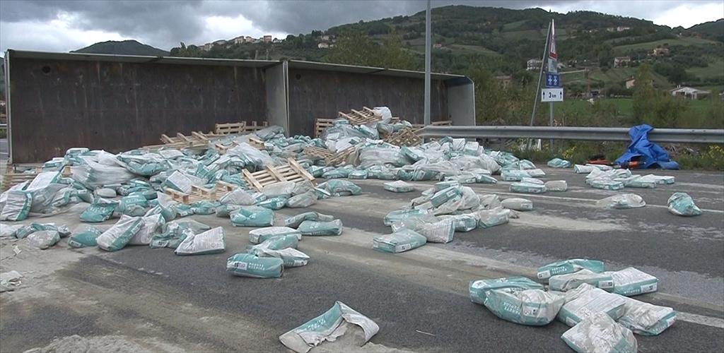 Incidente intorno alle 10.30 sulla SS 219, a Gubbio sulla nuova Variante Pian d'Assino, all'altezza dello svincolo di Torre Calzolari: un autoarticolato con rimorchio che tranisitava in direzione Branca, per cause in corso di accertamento, ha invaso la corsia opposta rompendo la barriera di protezione laterale e finendo ribaltato, con la parte anteriore del veicolo finita fuori dalla carreggiata nel fossato circostante. Celere l'intervento da parte di Vigili del Fuoco, Carabinieri e personale Anas, con l'ambulanza del 118 che ha trasportato il conducente del camion in ospedale a Branca per le cure del caso, anche se le sue condizioni(nel momento in cui è stato estratto dai VVF) non sembrano destare preoccupazione. Oltre al camion rimasto ad occupare orizzontalmente le due carreggiate e la barriera divelta, con autogru in arrivo da Perugia per il recupero del mezzo pesante, il rimorchio trasportava materiale cementizio che si è disperso quasi in toto sul manto stradale. Per questo il tratto è stato temporaneamento chiusa in entrambe le direzioni in corrispondenza dello svincolo di Torre Calzolari e il traffico è deviato sulla viabilità secondaria con indicazioni sul posto.
