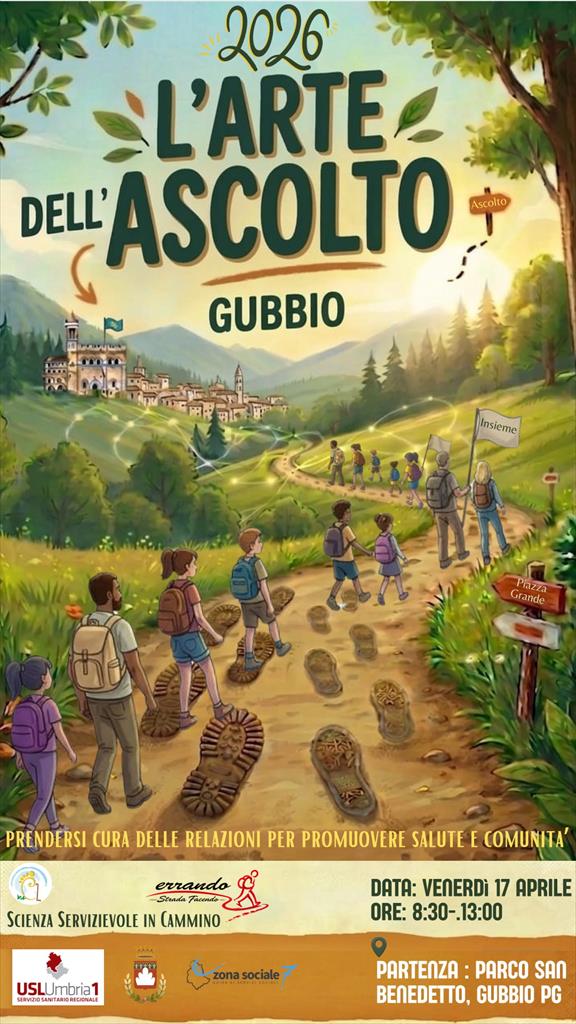 Gubbio ospita “La Marcia dell'ascolto”, iniziativa itinerante che farà tappa nella città di pietra domani, venerdì 17 aprile, dalle 8.30 alle 13. Si tratta di una camminata simbolica, con partenza dal Parco San Benedetto e arrivo in Piazza Grande. L'iniziativa nasce dalla collaborazione tra Servizio di Psicologia Aziendale, Distretto Alto Chiascio e Rete Aziendale di Promozione della Salute dell’Usl Umbria 1, insieme alla Zona Sociale 7, con l’obiettivo di rafforzare il percorso “Ascoltiamoci”, avviato con successo nel 2025. I protagonisti della giornata saranno le studentesse e gli studenti degli Istituti Secondari di primo e secondo grado del Distretto Alto Chiascio che vivranno l’esperienza di un’aula a cielo aperto, dove il movimento fisico si intreccia con la rielaborazione interiore e l’apprendimento diventa un’esperienza viva.