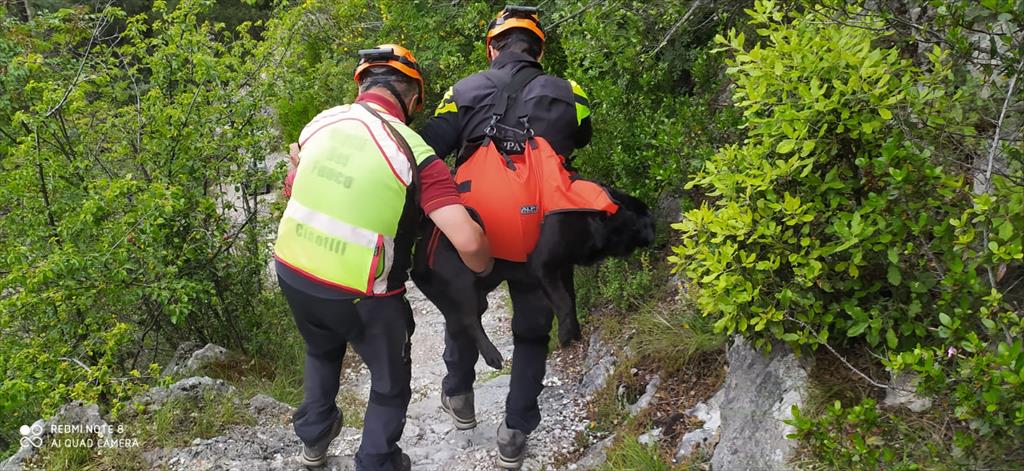 E' stata una mattinata di frenetiche ricerche, a lieto fine, per i Vigili del Fuoco di Gubbio, impegnati fin dalle 10 circa nelle ricerche di un cane caduto in un dirupo da un sentiero laterale del monte Ingino. L'incidente è stato subito segnalato dal padrone del cane, che stava percorrendo con lui il tratto di strada che conduce dalla prima Cappelluccia alla zona del parco di Coppo. I Vigili del Fuoco eugubini, coordinati dal responsabile locale Raul Sbianchi, si sono messi alacremente al lavoro, con il supporto delle unità cinofile, cercando il cane anche con l'ausilio di attrezzature tecnologiche, in un'area molto impervia e boschiva, dove non era facile a occhio nudo riuscire a perlustare ogni metro di superficie. L'intervento si è concluso con il ritrovamento e il salvataggio del cane, che è stato riportato sul sentiero, con una particolare imbracatura, grazie alla quale i Vigili lo hanno potuto sollevare e sostenere.