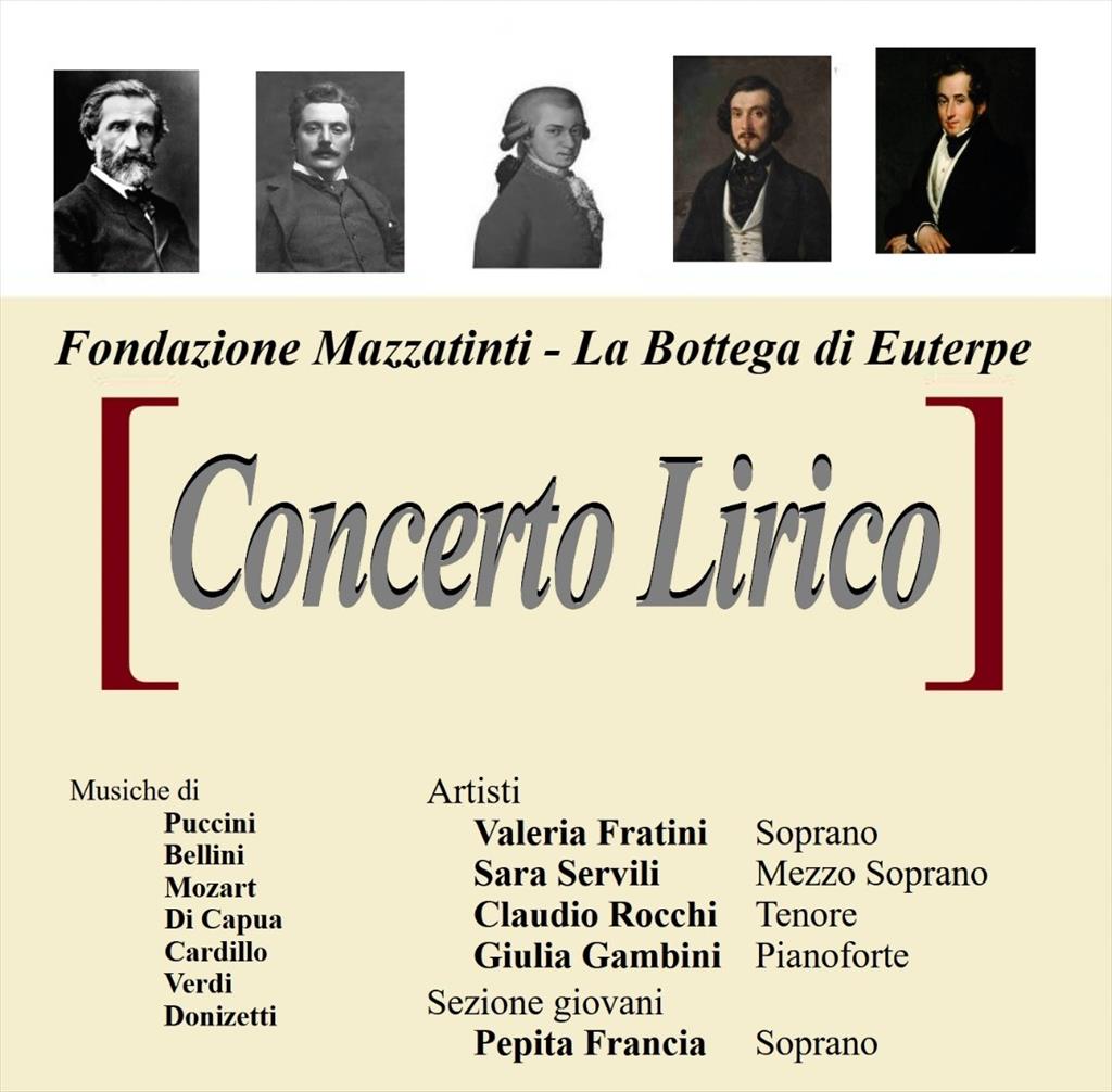 Appuntamento con la musica il prossimo sabato 8 novembre a Gubbio. Nella sala ex refettorio della biblioteca Sperelliana si terrà, alle ore 17, il "Concerto Lirico", promosso dalla Fondazione Mazzatinti e dalla Bottega di Euterpe, con il patrocinio del Comune di Gubbio. Sul palco: la soprano Valeria Fratini, il mezzosoprano Sara Servili, il tenore Claudio Rocchi, il soprano Pepita Francia. Al pianoforte Giulia Gambini. In programma musiche di Puccini, Bellini, Mozart, Di Capua, Cardillo, Verdi e Donizetti. I brani verranno presentati dal professor Lucio Vinciotti. Ingresso libero. Un bel pomeriggio di condivisione per conoscere e ascoltare i nuovi talenti della lirica.