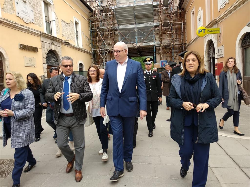 Visita del Commissario europeo per l’agricoltura e lo sviluppo europeo Phil Hogan a Norcia. Il Commissario, accompagnato dal Capo rappresentanza in Italia della Commissione Europea Beatrice Covassi è stato accolto dal sindaco di Norcia, Nicola Alemanno e dalla Presidente della Giunta Regionale, Catiuscia marini; presente anche il Prefetto della Provincia di Perugia, S.E. Raffaele Cannizzaro e l’assessore regionale all’agricoltura, Fernanda Cecchini. Il Commissario, per la prima volta in Umbria, dopo aver cenato domenica sera con il Sindaco Alemanno che ha avuto modo di esporgli le problematiche del territorio, nella mattinata di lunedì ha visitato il centro storico soffermandosi particolarmente davanti ai resti della Basilica di San Benedetto. Poi ha fatto visita ad aziende agricole e del settore agroalimentare del territorio rimanendo favorevolmente colpito. “Anche questa è un’altra giornata importatissima che dimostra la grande attenzione della Commissione Europea nei confronti del nostro territorio e quindi per il nostro futuro”. Ha detto il sindaco di Norcia, Nicola Alemanno. “Il Commissario Hogan sta maturando la consapevolezza che i fondi europei assegnati al nostro territorio sono stati spesi benissimo dalle nostre aziende. L’impegno – dice Alemanno - è quello di continuare a fornire le risorse necessarie per far sì che il territorio possa tornare ad essere competitivo non appena sarà possibile tornare pienamente nei mercati. Già stamattina – continua – il Commissario ha preso contatti con la Banca europea per gli investimenti, per cercare di aggiungere agli strumenti della programmazione europea la possibilità di avere finanziamenti con tassi abbordabili per le nostre aziende: questo – conclude il primo cittadino - potrà fare sicuramente la differenza”. Lo stesso Commissario sottolinea l’impegno a far si che la Banca Europea per gli Investimenti, BEI, possa “mettere a disposizione fondi a favore degli agricoltori delle zone colpite dal sisma così che possano rimanere in queste terre e creare nuova occupazione giovanile". Hogan già in mattinata ha contattato telefonicamente il Vice Presidente della Bei Andrew Mc Dowel, sollecitando un intervento in queste aree, in collaborazione con le Regioni e il Governo nazionale. L’Unione Europea ha già stanziato 1,2 miliardi di euro in favore del Centro Italia colpito dal sisma, attraverso il Fondo di solidarietà e la Commissione europeo, lo scorso aprile, ha approvato un aiuto aggiuntivo di 44 milioni di euro. In favore del Piano di sviluppo rurale - PSR inoltre, sono già disponibili 132 milioni di euro.