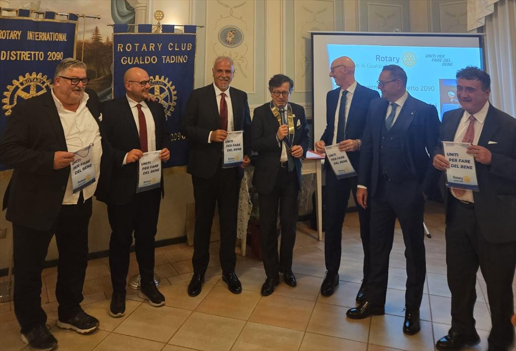 Sabato 18 ottobre il Governatore del Distretto 2090 Roberto Calai ha visitato il Rotary Club di Gualdo Tadino, presieduto da Sergio Bravetti. In mattinata si è svolto il consueto incontro in municipio con il Sindaco di Gualdo Tadino Massimiliano Presciutti che, con l’occasione di presentare ufficialmente la prima fase del progetto “Genesi” per lo sviluppo economico del territorio in ambito turistico, ha visto la partecipazione anche degli altri comuni della fascia appenninica interessati da questa importante iniziativa: Valfabbrica, Fossato di Vico e Nocera Umbra, nell’ambito del Club gualdese e Gubbio, Sigillo, Costacciaro, Scheggia e Pascelupo, grazie alla collaborazione del Rotary Club Gubbio. Nel pomeriggio il Governatore, assieme alla sua consorte Simona Granelli, è stato accompagnato dal socio Carlo Catanossi alla visita della Cattedrale di San Benedetto, particolarmente apprezzata da Roberto Calai. La giornata di lavori è terminata con la riunione assieme al Consiglio direttivo del Club alla presenza del presidente del club Rotaract e dei presidenti di commissione. La riunione con i membri del Consiglio è stata una importante occasione per un sincero ed aperto confronto sul valore e sul significato del Rotary Club; discussione che ha poi ispirato l’intervento del Governatore durante la conviviale tenutasi in serata presso il ristornate Il Poggio a Valfabbrica, alla quale hanno partecipato numerosi ospiti: il Governatore nominato Stefano Quarchioni, il Segretario distrettuale Paolo Saverio Fiore, l’Assistente del Governatore Carlo Giustiniani, il Presidente Rotary Club Fabriano Gabriele Alfonsi, il Presidente Rotaract Club Gualdo Tadino Jacopo Angeli, i Sindaci di Gualdo Tadino, Massimiliano Presciutti (nonché Presidente della Provincia di Perugia), Valfabbrica, Enrico Bacoccoli, Fossato di Vico, Lorenzo Polidori, Sigillo, Giampiero Fugnanesi, il vice Sindaco di Gubbio Francesco Gagliardi, il Presidente Lions Club Raffaele Fabbrizi e la prof.ssa Marcella Viventi, moglie del Prof. Antonio Pieretti, ricordato con commozione da Calai. Dopo i saluti del Presidente Sergio Bravetti, che ha voluto sottolineare il proficuo incontro con gli amministratori dei comuni interessati dal progetto “Genesi”, il Governatore ha incentrato il proprio intervento sulla “responsabilità di essere rotariani. Noi non siamo un soggetto altro rispetto alle nostre comunità ma siamo parti integranti e centrali della collettività – le parole di Roberto Calai -. Il Progetto Genesi, presentato questa mattina in municipio, è importante perché unisce la volontà di due Club vicini come quelli di Gualdo Tadino e Gubbio di dare il proprio contributo concreto al territorio di appartenenza. Durante il Consiglio direttivo ho ascoltato le diverse visioni del Rotary da parte di tutti i membri e dal nostro confronto è emerso che essere rotariani significa assumere un impegno che ha sì una sua storia, ma anche una continuità di azione nei territori che, tutti insieme, rappresentano il Rotary International. Ai Sindaci dico che noi ci impegniamo ad essere al centro dei nostri territori, che ci mettiamo la faccia e che se c'è un problema e siamo chiamati a risolverlo, non vogliamo tirarci indietro”. A proposito di impegno rotariano, durante la serata è stato consegnato il “Paul Harris Fellow”, la massima onorificenza rotariana, al socio Umberto Brunetti per la grande disponibilità sempre manifestata nel corso di tanti anni di militanza nel Club. La serata si è poi conclusa con il consueto scambio dei doni tra Presidente e Governatore e rispettive consorti, con la Sig.ra Simona che ha ricordato l’importanza del progetto End Polio Now ed il Club gualdese che ha consegnato a Roberto Calai la propria donazione alla Rotary Foundation.