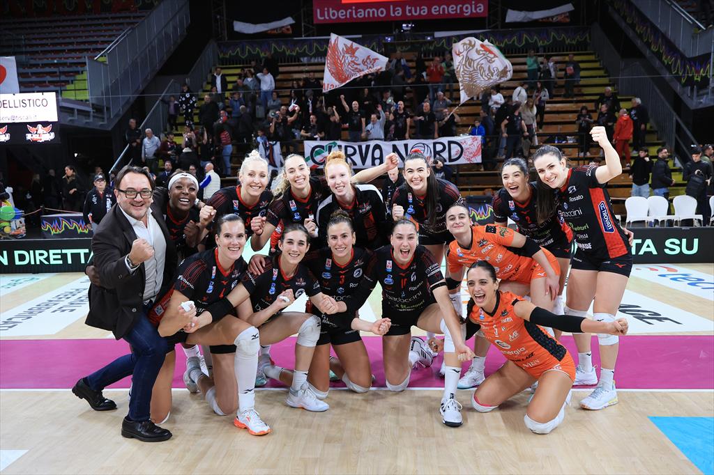 Giornata memorabile al Pala Barton Energy dove domenica 9 novembre, in ben due ore e 45 minuti di gioco, una grande Bartoccini MC Restauri Perugia piega al tie-break la Igor Gorgonzola Novara dopo una sfida veramente interminabile. I parziali lo testimoniano: 14-25, 25-20, 29-27, 20-25 e 19-17. Le Black Angels sono un diesel e, dopo un primo parziale dominato dalle piemontesi, iniziano lentamente a prendere campo, pareggiando prima i conti e poi svoltando con un terzo set chiuso ai vantaggi. Nel quarto Novara ha uno spunto migliore e si va al tie-break, dove le ragazze di Giovi non mollano e rispondono colpo su colpo anche quando Novara mette il muso davanti. Si chiude ai vantaggi con un colpo dei soliti di Gardini (22 punti e top scorer della gara), ma un plauso ad una Elena Perinelli che conquista meritatamente l’Mvp con 21 punti e tanti colpi geniali in momenti topici del match. Williams ne mette 20, mentre sono 8 punti per una Bartolini in gran spolvero, ma oggi ci vorrebbe un premio gara per tutto il gruppo. Nota di merito per una Sirressi che ritrova la titolarità e si toglie lo sfizio anche di un punto importantissimo favorito dall’incertezza delle ragazze di Bernardi. E adesso subito testa al prossimo match, perché si rigioca a distanza di appena tre giorni: le Black Angels saranno di scena mercoledì 12 novembre in casa di Bergamo. Poi appuntamento di nuovo al Pala Barton Energy domenica prossima con San Giovanni in Marignano.