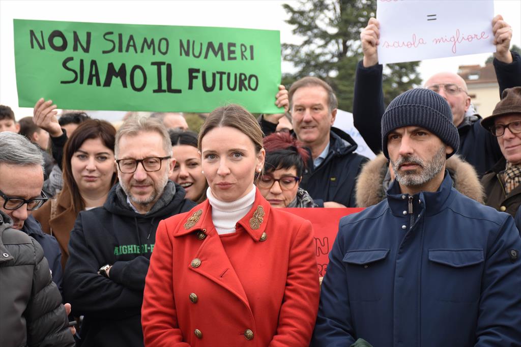 In tanti domenica mattina, genitori, studenti, insegnanti e cittadini davanti ai cancelli della scuola media Dante Alighieri di Città di Castello per manifestare contro il dimensionamento scolastico deciso dal Governo che prevede l'accorpamento della "Alighieri-Pascoli" ai due circoli didattici di Città di Castello. Il sindaco Luca Secondi, gli assessori della giunta, diversi consiglieri comunali, rappresentanti istituzionali locali, regionali, la consigliera Letizia Michelini e nazionali, il senatore Walter Verini, sindacati, associazioni, al fianco della comunità scolastica locale in tutte le sue componenti che ha deciso di organizzare una manifestazione spontanea di contrarietà alla applicazione del decreto direttoriale 62 del 28 gennaio 2026 che definisce l'assetto del sistema scolastico della regione Umbria nell'anno 2026/2027. "In sostanza - ha detto Lucia Fiorucci, coordinatrice dell'iniziativa in rappresentanza dei genitori e della scuola - ci sarà il taglio dei dirigenti, del personale di segreteria, del personale Ata. il tutto aggravato da una continuità didattica che non sarà garantita. La dirigenza unica rischia di ridurre la capacità di risposta ai bisogni specifici di bambini e ragazzi nelle diverse fasce d'età". "Siamo qui - hanno spiegato Secondo e l'assessora Letizia Guerri - accanto a chi ha organizzato in maniera condivisa e spontanea questa iniziativa direttamente al cantiere della scuola media Dante Alighieri per far sentire in maniera corale la voce di dissenso rispetto a questa situazione inaccettabile che va a colpire una realtà che è sotto gli occhi di tutti a seguito dell'inadempienza della definitiva demolizione e ricostruzione della scuola stessa".
