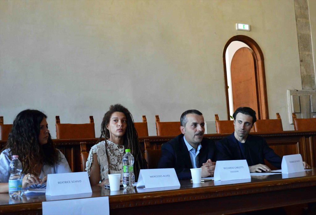 , tecnica tessile, derivante dall’arazzo a telaio verticale e consistente nell’avvolgere attorno ad un’anima di materia tessile altra materia tessile, creando forme che ricordano le radici degli alberi. Si chiama “Silenti” l’opera che metterà in scena giovedì 22 giugno dalle 21.30 alle 23.30 nell’atrio del Palazzo comunale. A fargli scegliere Città di Castello sarebbe stata propria la sua conformazione e in particolare “la severa ed elegante architettura del palazzo comunale, opera incompiuta di Angelo da Orvieto” ha detto lo stesso De Falco durante la conferenza stampa. “Il pregio e l’originalità del nostro centro storico non sfuggono ad un occhio esperto e proprio per questo siamo molto felici di mettere a disposizione una delle evidenze più simboliche, il palazzo comunale. Inoltre non possiamo dimenticare che siamo nella patria di Burri e la ricerca materica è un concetto familiare e un registro espressivo che non è certo estraneo al nostro clima culturale” ha detto l’assessore al Turismo e Commercio Riccardo Carletti. Thomas De Falco nasce come arazzista alla Scuola di arti applicate di Milano ma ben presto, come ha spiegato Beatrice Schivo, “si dedica alla scultura tessile, espressione che contribuisce a fondare e ad analizzare nelle sue diverse dimensioni”. Nel dettaglio tra i due imponenti pilastri ottagonali che sostengono le volte dell’atrio, si troveranno due soggetti, un uomo e una donna. Alla donna, la performer Merceds Alves, presente in conferenza stampa, saranno collegati lunghi