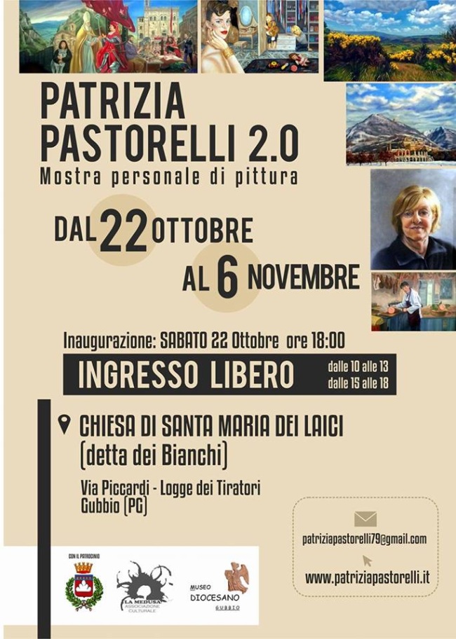 Si aprirà sabato 22 ottobre, alle ore 18 la Mostra personale della pittrice Patrizia Pastorelli, dal titolo “Patrizia Pastorelli 2.0“, ospitata presso la suggestiva sede della Chiesa di Santa Maria dei Laici meglio nota come “Chiesetta dei Bianchi”. La mostra patrocinata dal Comune di Gubbio e coadiuvata nell’organizzazione dall’Associazione Culturale La Medusa, ente gestore del Polo Museale Diocesano, presenterà al pubblico un corpus di opere eterogenee, molto legate al tema naturalistico ma anche alla sua città natale, alla sua tradizione e ai suoi cittadini più conosciuti. Patrizia Pastorelli, eugubina di nascita ma toscana di adozione, inizia a disegnare da bambina, ma è in età adolescenziale a che fare con un incontro importante, quello con i suoi insegnanti che l’avvicinano al bello, all’estetica e dunque alla rappresentazione pittorica. È qui che Patrizia è toccata in un punto profondo di sé, che determinerà le sue scelte di vita. Viene educata a osservare, viene educata a disegnare. Incomincia a giocare con le linee e le forme con metodo e costanza, tanto da sperimentare in modo sempre più profondo una comunicazione tra la sua mente e la sua mano. Intraprende gli studi d’arte mettendosi in gioco, tanto che da allora, i suoi disegni e la sua pittura non smetteranno mai di dirci qualcosa. L’incontro con questo mondo non sarà mai interrotto, ma sarà sempre alimentato dalle vicissitudini della sua vita, come gli studi universitari in Lingue e Letterature straniere, l’incarico come assistente di volo, sono esperienze che Patrizia integrerà nella passione per l’arte. E lo farà concretamente, portandoci l’esperienza del viaggio nei suoi dipinti. Infatti, i cieli che ci illustra nascono da lassù. Sono spazi morbidi fatti di mille nuvole che scaldano l’aria o la raffreddano, poiché intrisi di acqua scura. Così, la sua osservazione comunica con i suoi stati d’animo, che cambiano insieme alle linee e ai colori. Ora, che anche noi guardiamo i suoi quadri siamo mutati da essi, sentiamo un certo turbamento di fronte ad atmosfere cromatiche, ma ci emozioniamo serenamente per l’armonia che incontra il nostro sguardo e la nostra anima. Le sue sono illustrazioni che ci parlano di lei, ma anche di noi, fruitori di uno stesso gioco. Grazie ai quadri, ogni volta diversi, comprendiamo qualcosa di più di noi stessi. Il quadro non è mai lo stesso, cambia ogni volta che lo guardiamo, e perciò quello che esso vuole dirci è che ogni volta ci ritroviamo diversi, come se una nuova comprensione ci cambiasse dentro. Dunque Patrizia Pastorelli costruisce il proprio mondo attraverso la pittura, che raffigurano l’infanzia, ci ricordiamo del nostro passato di bambino, un tempo ricco di gioie e dolori, sorrisi e lacrime. Dal 2008 ad oggi la pittrice eugubina annovera decine di partecipazioni ad eventi artistici e collettive in Umbria e non solo. La mostra che sarà aperta ufficialmente con vernissage sabato 22 alle ore 18.00, sarà aperta al pubblico dal martedì alla domenica fino al 6 novembre, con ingresso libero.