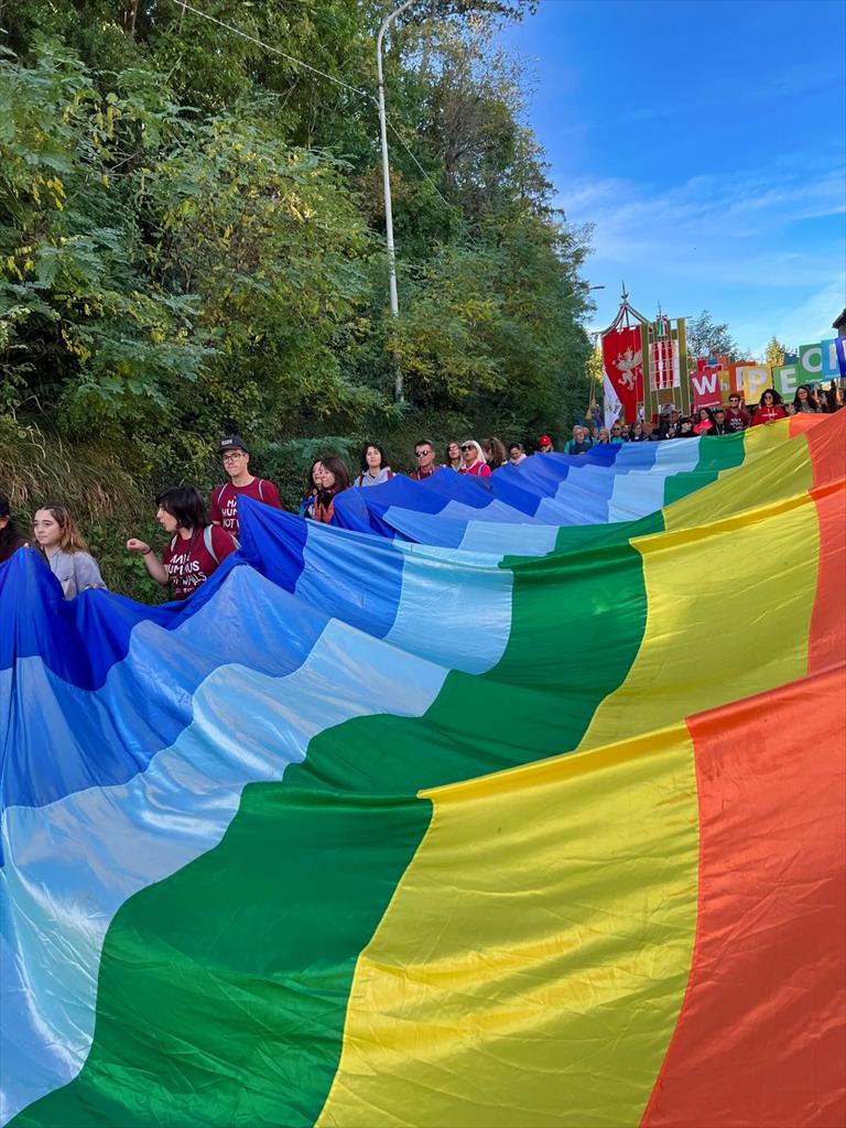 La Marcia della pace PerugiaAssisi è arrivata alla Rocca di Assisi dove si tiene il momento conclusivo. I primi a giungere sono stati il grande striscione con scritto Fraternità e i gonfaloni delle Istituzioni. "Ci hanno boicottato ma vedete quanti siamo..." ha detto dal palco Flavio Lotti.