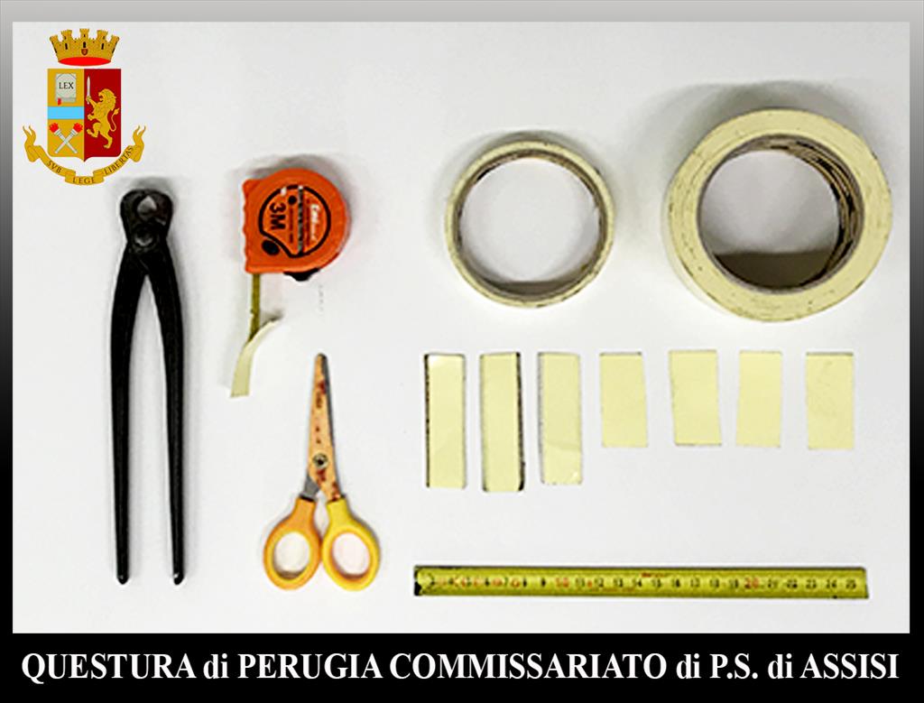 L’occhio sempre vigile e attento degli operatori della Squadra Volante del Commissariato P.S. Assisi ha consentito di assicurare alla giustizia un ladro specializzato nei furti in chiesa. Mentre gli agenti effettuavano un normale pattugliamento, notavano un individuo, con precedenti per furto in luoghi sacri, mentre scendeva dalla scalinata secondaria di una chiesa di Assisi con una mano chiusa, nel tentativo di occultare qualcosa. A quel punto l’uomo veniva bloccato e mostrava le monetine nascoste nella mano; sentitosi alle strette confermava lui stesso di averle rubate poco prima dai raccoglitori della questua. Gli agenti effettuavano pertanto la perquisizione personale dell’uomo, a seguito della quale rinvenivano, nella tasca dei pantaloni, altre monete per un valore complessivo di circa 5 euro e, all’interno del borsello che teneva a tracolla, numerosi ritagli di nastro biadesivo ed un pezzo di flessometro metallico lungo circa 20 cm., strumenti utilizzati solitamente per prelevare denaro dalle cassette delle offerte. La perquisizione veniva estesa anche all’autovettura in suo possesso, che aveva parcheggiato a breve distanza dalla chiesa; all’interno veniva trovato un altro flessometro, due rotoli di biadesivo, una forbice e una tenaglia. L’uomo, condotto presso gli Uffici del Commissariato per la formalizzazione degli atti e compiutamente identificato per un 55enne originario di Palermo ma residente da tempo ad Assisi, veniva pertanto denunciato all’Autorità Giudiziaria per possesso ingiustificato di chiavi alterate e grimaldelli, ed il materiale sottoposto a sequestro. Veniva contestualmente avviata attività investigativa per verificare anche l’avvenuto furto, tramite l’acquisizione delle immagini della videosorveglianza interna della chiesa. Dalla visione dei filmati, operata da personale della Polizia Scientifica, si accertava chiaramente la condotta delittuosa dell’uomo che veniva ripreso, in modo nitido e chiaro, armeggiare davanti alla cassetta delle offerte mentre, inginocchiato, faceva finta di pregare. Per tale motivo il 55enne veniva denunciato all’Autorità Giudiziaria anche per furto aggravato e, nei suoi confronti, veniva avviata la proposta per il Foglio di Via Obbligatorio.