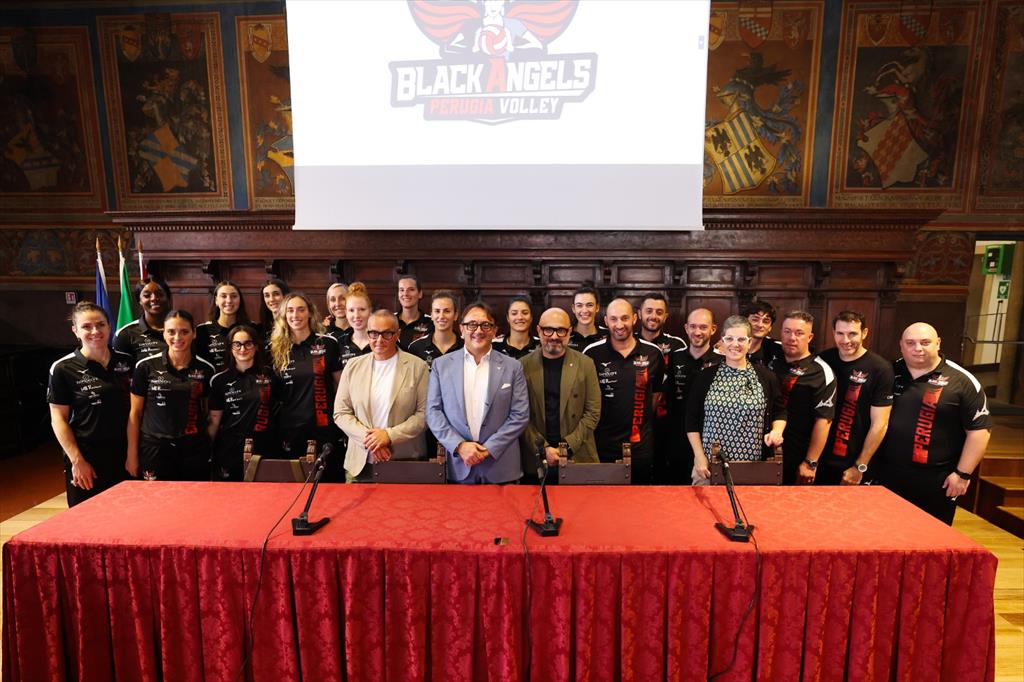 Nella prestigiosa cornice della Sala dei Notari è stata presentata la Bartoccini MC Restauri Perugia 2025/2026. Alla cerimonia, che si è tenuta nella mattinata di martedì 23 settembre, hanno preso parte l’Assessore allo Sport del Comune di Perugia Pierluigi Vossi, il Vicepresidente Fipav Umbria Isabella Straccali, il Presidente del club Antonio Bartoccini e Francesco Covarelli, title sponsor MC Restauri. A condurre la presentazione lo speaker ufficiale delle Black Angels, Marco Cruciani. La presentazione si è conclusa con la foto di rito che ha visto protagoniste le atlete e lo staff tecnico al completo, pronti a vivere una nuova stagione nella massima serie con l’entusiasmo e la determinazione che contraddistinguono le Black Angels.