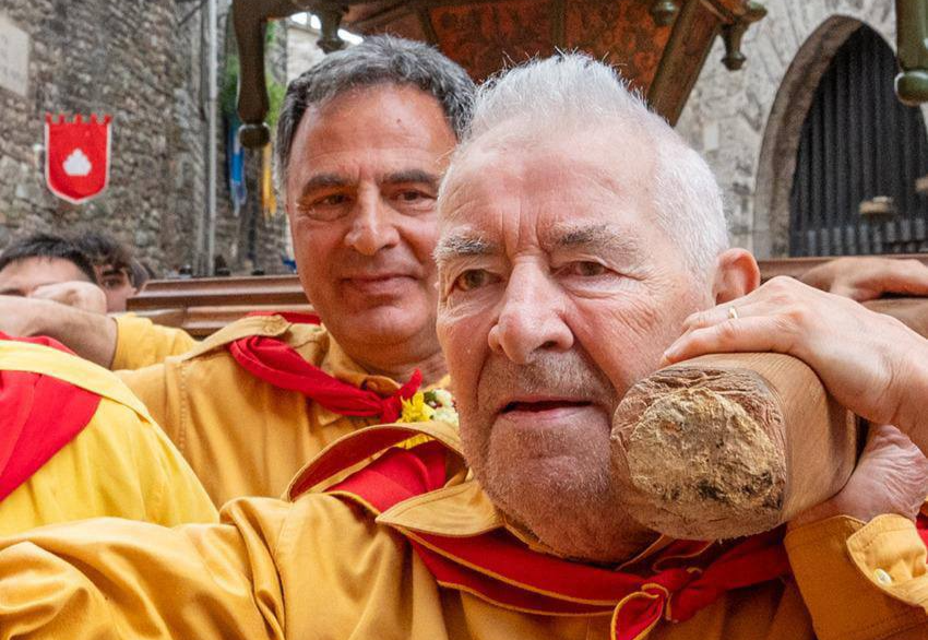 "Oggi ci ha lasciato Mario Vispi, per tutti i Santubaldari e gli Eugubini “Iaio”. La triste notizia ci lascia attoniti, perfino sorpresi. Mario è stato per così tanto tempo in mezzo ai ceraioli da diventare una figura senza età, un amico sempre presente attraverso molti decenni. Portatore vero, forte ed incrollabile in ogni tratto della corsa, a cominciare dalla Calata dei Neri con gli amici di San Martino. Iaio era fatto per stare sotto la stanga. Con l’umiltà e l’orgoglio della brava persona che è stato, con l’attaccamento e la passione che ognuno di noi ha potuto ammirare. Lo vedevamo apparire per le strade di Gubbio in tutti i momenti della Festa e non solo il 15 maggio. Devoto del Patrono Ubaldo, vitale appassionato dei Ceri. Fino a pochi anni fa, ormai “grande”, la prima domenica di maggio lungo la discesa del monte ed in città, Mario lo trovavi spesso sotto il “timicchione”, incurvato sotto il peso del cero e dei piccoli ceraioli, con i rigagnoli di sudore che, sgorgando dai suoi capelli ricci, percorrevano le pieghe del suo viso non più giovanissimo, ma con la vitalità di sempre. Con Mario i Santubaldari perdono un amico, una voce incoraggiante, un riferimento di fede e valore. Sta a noi il compito di onorarne la memoria. La Famiglia dei Santubaldari, insieme a tutti i ceraioli, porge le più sentite condoglianze alla cara moglie Germana, alle figlie Annarita e Lucia, ai generi e ai nipoti tutti. Che Sant'Ubaldo accolga a sé vicino l’amico “Iaio”.