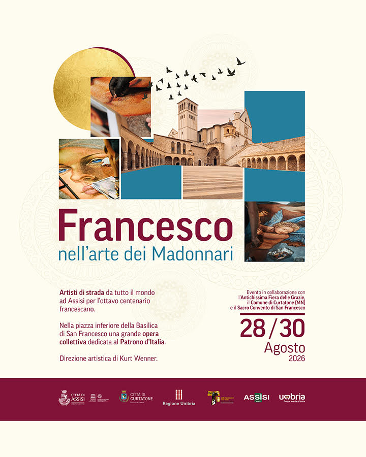 I migliori madonnari di tutto il mondo ad Assisi per realizzare una maxi opera collettiva sulla piazza inferiore della Basilica di San Francesco, in occasione degli 800 anni della morte del santo patrono d'Italia. L'iniziativa - intitolata "Francesco nell'arte dei madonnari" - si svolgerà ad agosto ed è frutto di un accordo siglato tra la città serafica e il Comune di Curtatone, in provincia di Mantova, punto di riferimento internazionale per l'arte figurativa effimera con l'Antichissima Fiera delle Grazie, manifestazione nota soprattutto per il concorso dei madonnari che si svolge da oltre mezzo secolo. L'intesa è stata firmata nel palazzo comunale di Assisi dal sindaco Valter Stoppini e dal primo cittadino di Curtatone Carlo Bottani, presenti anche l'assessore al turismo assisano Fabrizio Leggio e una delegazione della città lombarda. "Si tratta di un accordo all'insegna dei temi francescani - ha sottolineato il sindaco di Assisi - che valorizza arte, tradizione e dialogo fra territori. Per la prima volta, in questo anno speciale, si riuniranno nella nostra città i migliori interpreti dell'arte figurativa effimera per donare a cittadini, pellegrini e turisti un'emozionante opera collettiva dedicata a San Francesco. Un evento importante, nell'ambito delle grandi celebrazioni per l'ottavo centenario francescano, che apre le porte anche a nuove future collaborazioni tra le due comunità". La collaborazione si concretizzerà in due appuntamenti fra arte e promozione dei valori della pace, della fraternità, dell'attenzione al creato. Il primo si terrà a Curtatone, nella frazione di Grazie, il 14 e 15 agosto, in occasione della 52/a edizione dell'incontro nazionale dei madonnari, quando gli artisti realizzeranno le loro opere sul sagrato del Santuario ispirandosi ai temi francescani. Il secondo è previsto ad Assisi dal 28 al 30 agosto, quando circa 50 madonnari provenienti da diversi Paesi, protagonisti dell'evento a Grazie e considerati tra i migliori al mondo, realizzeranno una grande opera collettiva dedicata a San Francesco, sotto la direzione artistica di Kurt Wenner. L'iniziativa, organizzata dal Comune di Assisi, è in collaborazione del Sacro Convento di San Francesco. Il maxi disegno verrà realizzato su supporto permanente e sarà destinato a rimanere nel tempo, come icona artistica in dono alla città. I dettagli dell'evento sono stati illustrati, ad Assisi - riferisce il Comune - nel corso dell'incontro pubblico dedicato alla presentazione delle iniziative promosse per le celebrazioni dell'ottavo centenario francescano. Il sindaco di Curtatone, la direttrice del Museo dei madonnari di Grazie, Paola Artoni, e il maestro madonnaro Mariano Bottoli hanno evidenziato come "l'evento ad Assisi rappresenti un passaggio significativo per la storia dell'Antichissima Fiera delle Grazie e per valorizzare l'arte effimera, ma bella ed efficace dei madonnari, come strumento di dialogo e incontro".