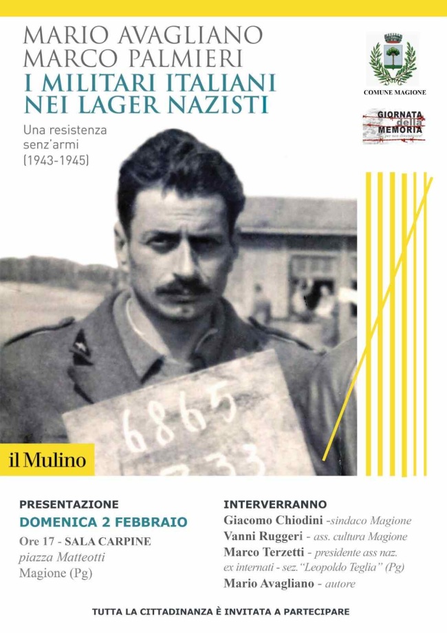 Lo storico e giornalista Mario Avagliano sarà a Magione domenica 2 febbraio, sala Carpine ore 17, per la presentazione del volume “I militari italiani nei lager nazisti. Una resistenza senz’armi (1943-1945)” da lui curato insieme a Marco Palmieri per le edizioni Il Mulino.
