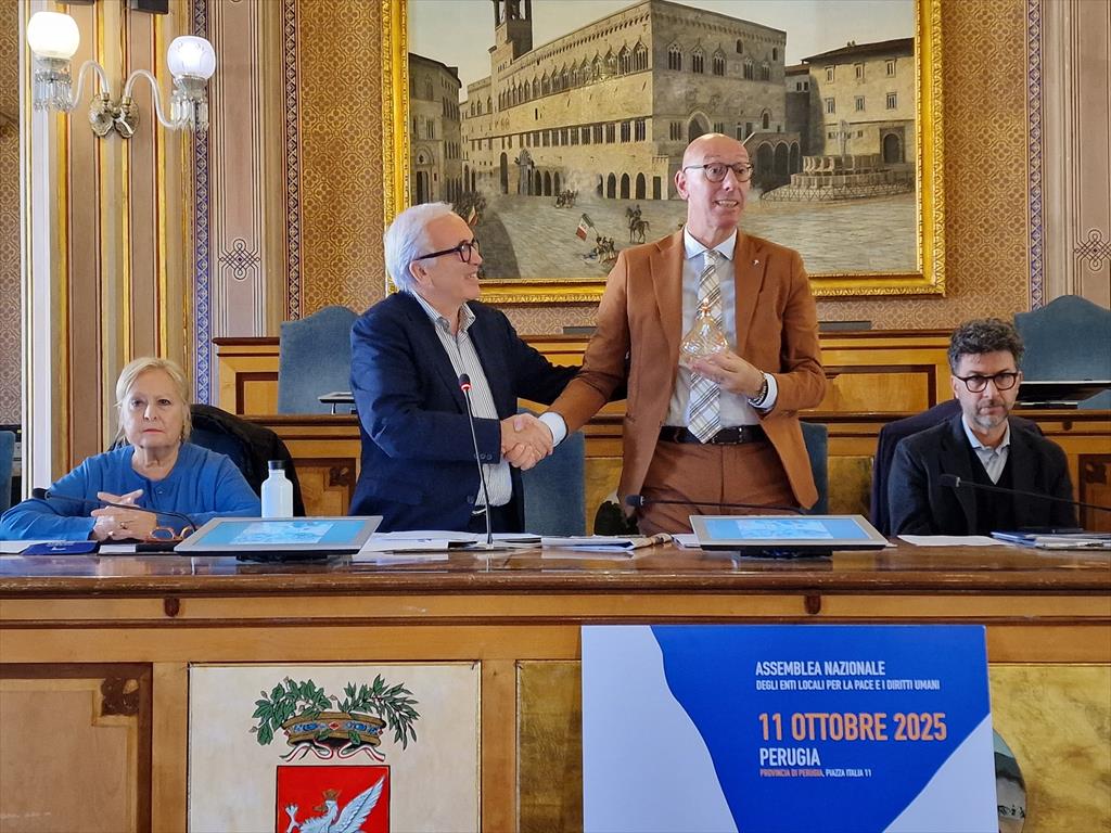 Massimiliano Presciutti è il nuovo presidente del Coordinamento nazionale degli Enti locali per la pace e la fraternità. Il passaggio di consegne con il precedente, Andrea Ferrari, è stato ufficializzato questa mattina nel corso dell’assemblea nazionale che ha visto confrontarsi nella Sala del Consiglio provinciale di Perugia un folto numero di rappresentanti istituzionali, alla vigilia della 40° Marcia Perugia Assisi. “Una nomina – ha commentato il direttore dello stesso Coordinamento Flavio Lotti – che restituisce all’Umbria un protagonismo che affonda le radici nella storia”. “Con questa nuova assemblea che riparte dalla città da dove tutto è partito – ha dichiarato Presciutti - abbiamo tutti un grande compito. I temi di pace e diritti umani tornino ad essere azione quotidiana e non solo in momenti in cui c'è clamore mediatico. Ancora decine di conflitti insanguinano il mondo e impediscono a tante persone di poter sventolare la propria bandiera. Speriamo che domani tante bandiere sventolino, per dire al mondo che la marcia è un patrimonio di tutti che dobbiamo saper rilanciare. L'impegno dunque da prendere è che questo soggetto cresca e metta radici sempre più profonde e che diventi la casa dove ogni giorno vengono prese decisioni concrete”. All’assemblea di questa mattina ha preso parte anche il sindaco di Betlemme Maher Nicola Canawati che domani parteciperà alla Marcia. “Oggi voglio parlare di futuro e speranza – ha dichiarato -. Non vogliamo tornare in guerra. Abbiamo bisogno di azioni concrete perché ciò avvenga. Avere uno stato di Palestina significa avere voce negli scenari internazionali. Non perché vogliamo potere, ma per essere ascoltati e rispettati. Essere qui significa lanciare un grande segnale per il futuro dell'umanità”. Dal 1986 il Coordinamento Nazionale degli Enti Locali per la pace e i diritti umani promuove l'impegno dei Comuni, Province e Regioni italiane per la pace, i diritti umani, la solidarietà e la cooperazione internazionale. Tra i programmi presentati questa mattina dal Coordinamento i progetti: “Facciamo come La Pira - L’impegno delle città per la pace in Ucraina, a Gaza e in Medio Oriente, in Sudan e nel resto del mondo”, “Sui passi di Francesco - L’impegno delle città per la celebrazione degli 800 anni di San Francesco, Patrono d’Italia”, “Giro d’Italia per la Pace - Il viaggio nelle città laboratorio e cantiere di pace e fraternità”, “Sbellichiamoci! - Il nuovo programma per estendere l’educazione alla pace e alla fraternità delle giovani generazioni”, “Rete degli Artigiani e Artigiane di Pace - La Rete delle amministratrici e degli amministratori che vogliono ri-costruire una coscienza, una cultura e una politica di pace”. Al presidente della provincia Presciutti è stata simbolicamente consegnata la lampada votiva di San Francesco che in occasione del centenario francescano passerà di città in città accompagnata dallo slogan “ogni città un cantiere di pace, ogni città una scuola di pace”. “La pace è un nostro compito – sono state le parole della vicepresidente della Provincia di Perugia Laura Servi a conclusione dell’assemblea di oggi -. Viviamo in un momento in cui la violenza è sempre più esacerbata. San Francesco, al contrario, si mise in cammino fino all’Egitto per cercare il dialogo e attraverso l’incontro di due culture sono stati prodotti dei risultati che sono giunti fino ad oggi. Tutti siamo chiamati a fare le nostre piccole azioni per la pace. Il trattato di questi ultimi giorni è un neonato che ha bisogno di tante cure. Tutte le vittime prodotte ci stimolano a fare ciò che è nostra intenzione con azioni dal basso”.