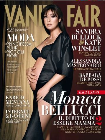 Monica Bellucci mostra il pancione a "Vanity Fair": l'attrice tifernate domani in edicola con immagini della sua fiorente gravidanza all'età di 45 anni: "Non mi sento coraggiosa - dice - ma solo fortunata".