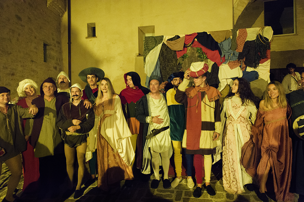 I lamenti dei malati in un antico ospedale, poi le grida dei carcerati, fino alle botteghe degli artigiani, ai mercanti in piazza e alla vita del popolo. Queste le scene con le quali ieri sera, a partire dal via Fossatello, Borgo San Martino ha fatto entrare i visitatori del centro storico nelle atmosfere del Medioevo. Le animazioni nei vicoli alla luce delle torce hanno riportato Nocera Umbra agli anni dal 1350 al 1450, culminando poi nello spettacolo teatrale al lavatoi antichi, dove i figuranti hanno allestito una piccola piéce teatrale. Stasera dalle 21, nella sua parte di città, toccherà a Porta Santa Croce mettere in scena gli allestimenti teatrali, ridando vita agli anni dal 1820 al 1920, partendo da via Ortaccio fino a piazzetta Torre Vecchia. Gli allestimenti, insieme alla cena d’epoca e ai cortei storici di martedì sera, frutteranno ai due Quartieri un punteggio, assegnato da una giuria storico-artistica e gastronomica, per l’assegnazione del Premio speciale. Per scoprire il vincitore, l’appuntamento è per domani sera (sabato 10 agosto) a mezzanotte in piazza Caprera. Chi avrà ottenuto il punteggio più alto si vedrà assegnare come premio un’opera ceramica realizzata di Victoria Conforto, del liceo Mazzatinti di Gubbio. Intanto, prosegue il sodalizio con “Nocera Umbra Borgo Green”, grazie al quale le Taverne dei due Quartieri, aperte tutte le sere dalle 19, utilizzano prodotti a minimo impatto ambientale. E ognuno dei due Quartieri ha un “Amico bicchiere”, bicchieri personalizzati da Nocera Umbra Borgo Green con i colori dei due sfidanti, riutilizzabili e riciclabili. Si tratta di un modo per limitare l’uso della plastica, proponendo invece materiali bio e sensibilizzando verso una più attenta raccolta differenziata. Fra gli ospiti della serata di ieri, Giorgio Barchiesi, “Giorgione”, conduttore televisivo, scrittore, gastronomo e ristoratore italiano, che ha gustato la cena nella Locanda di Porta Santa Croce.