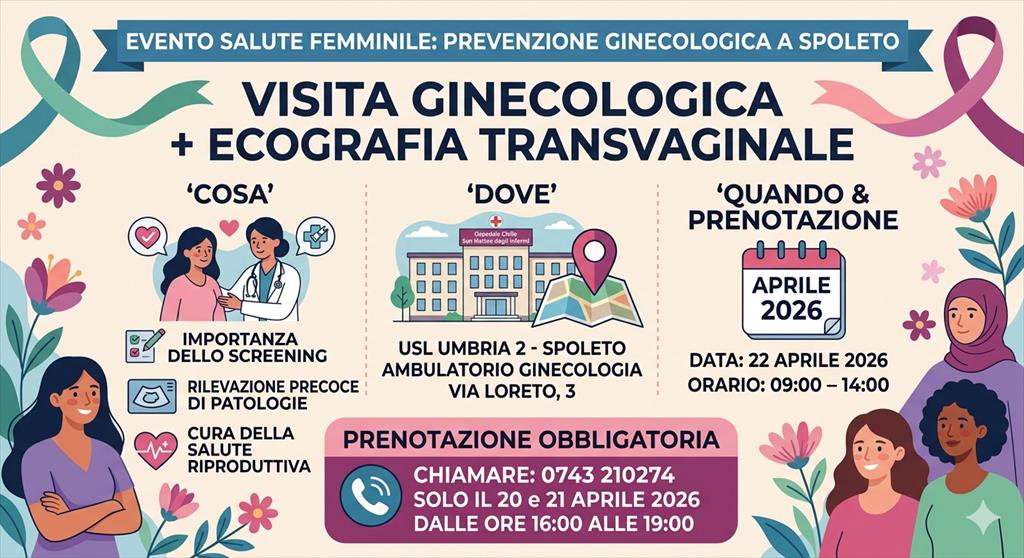 L'azienda Usl Umbria 2 aderisce all'evento organizzato dalla Fondazione Onda Ets rivolto a tutti gli ospedali con il Bollino rosa che si terrà dal 22 al 29 aprile 2026 dal titolo "Open Week sulla salute della donna". Iniziative rivolte alle donne con età superiore ai 18 anni si terranno negli ospedali di Foligno e Spoleto. A Foligno, per l'endocrinologia, il 23 aprile dalle 8.30 alle 13.00, screening per l'osteoporosi con colloqui e screening nodulo tiroideo con ecografi. I colloqui e le ecografie andranno prenotate dal lunedì al venerdì dalle ore 11.30 alle 13.30 a partire da lunedì 13 aprile 2026. I contatti sono 0742 3397010 o ambulatoriareamedica.foligno@uslumbria2.it Le prestazioni verranno eseguite nell'ambulatorio ex Urp. Il 22 aprile dalle ore 15.00 alle 17.40 visita dermatologica per nevi con mappatura manuale dei nevi. Le visite - a numero chiuso - andranno prenotate dal lunedì al venerdì dalle ore 11.30 alle ore 13.30 a partire da lunedì 13 aprile. I contatti sono 0742 3397010 o ambulatoriareamedica.foligno@uslumbria2.it In neurologia, dal 22 al 29 aprile dalle ore 8.30 alle 15.00, distribuzione di materiali informativi di sensibilizzazione per prevenzione dell'ictus, counselling per cefale, epilessia (gravidanza, allattamento...) e per sclerosi multipla che avverrà nell'atrio del reparto di Neurologia e Neuroriabilitazione al terzo piano scala D ascensore D. Ginecologia ed ostetricia: il 23 aprile dalle ore 10.00 alle 13.00 sarà possibile fare colloqui/consulenze ginecologiche con la dottoressa dell'Omo sui seguenti argomenti: gravidanza e nutrizione, gravidanza e obesità, il parto spontaneo dopo manovra di rivolgimento per presentazione podalica. I posti disponibili sono dieci ed è necessaria la prenotazione che potrà essere fatta a partire dal 13 aprile, scrivendo alla mail saradellomo@uslumbria2.it, indicando l'argomento di interesse fino ad esaurimento dei posti disponibili. Il 24 aprile dalle 8.00 alle 9.00 sarà possibile fare colloqui/consulenze ginecologiche/ostetriche con le dottoresse Micanti e dell'Omo sul seguente argomento: "Il parto dopo pregresso taglio cesareo o chirurgia uterina". I posti disponibili sono quattro ed è necessaria la prenotazione, dal 13 aprile, alla stessa mail. Il 24 dalle 10.00 alle 12.00 sarà possibile fare colloqui/consulenze ginecologiche/ostetriche con le dottoresse Fino e dell'Omo sui seguenti argomenti: gravidanze gemellari e diabete gestazionale. I posti disponibili sono sette ed è necessaria la prenotazione via mail. Sempre il 24, dalle ore 12.00 alle 14.00 sarà possibile fare colloqui/consulenze ginecologiche/ostetriche con le dottoresse De Paola e dell'Omo su disturbi ipertensivi in gravidanza e rallentamento della crescita fetale. I posti disponibili sono sette ed sempre è necessaria la prenotazione. Il 24 dalle 15.00 alle 17.00 sarà possibile fare colloqui/consulenze ginecologiche/ostetriche con la Dr.ssa Bonaca sui temi della menopausa. I posti disponibili sono sette ed è necessaria la prenotazione che potrà essere fatta a partire dal 13 aprile, ancora scrivendo alla mail saradellomo@uslumbria2.it Il 28 dalle 10.00 alle 13.00 sarà possibile fare colloqui/consulenze ginecologiche/ostetriche con la dottoressa dell'Omo sui seguenti argomenti: endometriosi, fibromi, contraccezione. Sempre a numero chiusoe tramite prenotazione (dal 13 aprile). Il Il 28 e il 29 dalle 9.00 alle 13.00 all'ingresso dell'ospedale, info point con distribuzione di materiale informativo. Anche l'ospedale di Spoleto dell'azienda Usl Umbria 2, come detto, aderisce all'(H) Open Day sulla salute della donna promossa da Fondazione Onda Ets. Si potrà eseguire una visita ginecologica con ecografia tranvaginale, il 22 aprile, dalle 9.00 alle 14.00, nell'ambulatorio di ginecologia in via Loreto 3 con prenotazione (il 20 o il 2i, dalle 16.00 alle 19.00), al numero 0743 210274. In fase di presentazione dell'iniziativa nazionale, che vede la partecipazione di ben 253 presidi aderenti al network con il Bollino rosa, Francesca Merzagora, presidente di Fondazione Onda Ets, ha spiegato: "L'(H) Open Week non è solo una settimana di servizi gratuiti, ma un progetto culturale che da anni promuove un approccio alla salute attento alle differenze di genere. I numeri delle adesioni e delle prestazioni erogate dimostrano quanto sia forte la domanda di prevenzione e quanto sia necessario rendere i servizi sempre più accessibili e orientati ai bisogni delle donne".