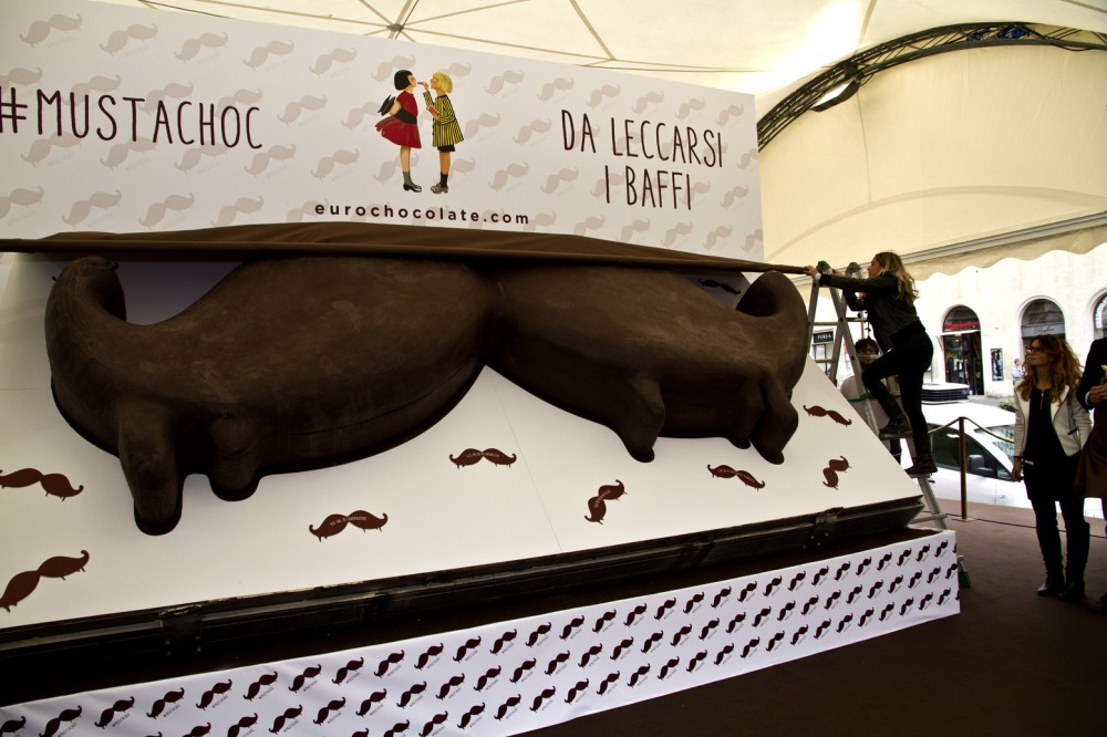 Taglio del nastro stamani nel cuore di Perugia per l'edizione 2015 di Eurochocolate, evento "da leccarsi i baffi" che ha "#mustachoc" come claim. La kermesse, che andra' avanti fino al 25 ottobre prossimo, propone numerose iniziative oltre ai tradizionali stand aperti principalmente lungo corso Vannucci, Piazza Italia e alla Rocca Paolina. I visitatori potranno ammirare le classiche sculture di cioccolato che verranno via via realizzate, e assistere a chocolate show. Sono previsti anche appuntamenti internazionali con Eurochocolate World e il summit In the Hearth of Chocolate. Nelle prime ore della manifestazione e' stato registrato subito un buon flusso di pubblico, tra cui anche un nutrito gruppo di operatori di una televisione cinese che si occupa di viaggi e ha fatto tappa a Perugia. A inaugurare la manifestazione, giunta alla ventiduesima edizione, e' stato il patron, Eugenio Guarducci, in piazza IV Novembre, dove e' stato tolto il velo a giganteschi mustacchi, simbolo dell'evento. Si tratta di un vero e proprio baffo da guinness ricavato da un blocco di 3.000 chili di cioccolato, che e' stato scolpito dallo scultore Andrea Gaspari.