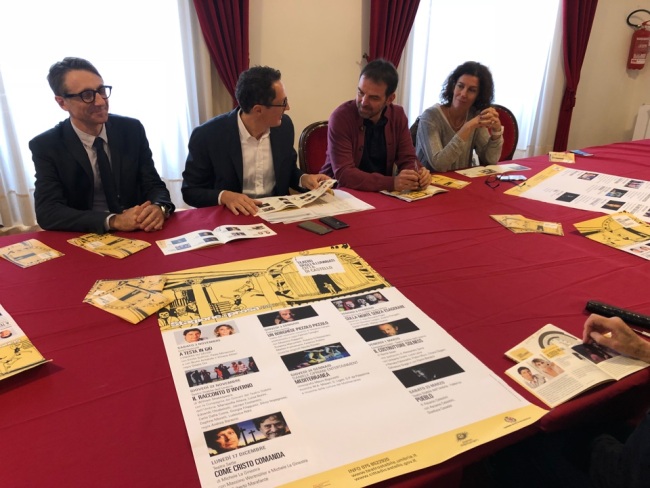 Presentata la stagione di prosa 2018/2019 del Teatro degli Illuminati di Città di Castello: in collaborazione con il TSU, otto spettacoli - sette di prosa e uno di danza - , quattro esclusive. In cartellone grandi nomi del teatro italiano: da Solfrizzi a Dapporto, da Umberto Orsini e Ascanio Celestini. Oleificio Ranieri acquista un intero ordine per i giovani tifernati. Ranieri e Teatro tornano insieme per l’iniziativa “Taste the theatre”, campagna di promozione del teatro diretta ai tifernati tra i 16 ed i 29 anni. L’azienda ha acquistato un intero ordine degli Illuminati che permetterà di assistere agli spettacoli della stagione a chi, compreso in quella fascia d’età, si sarà prenotato sul sito http://www.tastethetheatre.it. Inoltre da quest’anno, in collaborazione con l’assessore ai Servizi Educativi Rossella Cestini è stato sviluppato un progetto in base al quale gli studenti potranno ottenere fino a sei crediti se aderiranno ad un’alternanza scuola-lavoro organizzata nel pomeriggio che precede lo spettacolo. Confermate tariffe ed agevolazioni per i giovani. Il vicesindaco e assessore alla Cultura del comune tifernate Michele Bettarelli ha sottolineato come “anche quest’anno il Teatro degli Illuminati abbia un’offerta culturale a trecentosessanta gradi perché a partire dalla stagione di prosa, un appuntamento di grande qualità ed interesse, sarà riproposto Teatro Ragazzi e la Rassegna teatrale a chilometri zero con le compagnie locali. Otto spettacoli, quattro anteprime. La stagione, sostenuta da Sogepu, Tandem, Bianchini Infissi e Green Service, è stata illustrata dal direttore del Tsu Nino Marino e dalla responsabile del circuito teatrale Bianca Maria Ragni: Su il sipario sabato 3 novembre con una commedia tratta da un originale francese, “A testà in giù” con Emilio Solfrizzi e Paola Minaccioni. Si prosegue giovedì 22 novembre con “Il racconto d’inverno”, prima esclusiva, con la Compagnia dei giovani del Tsu. Michele La Ginestra è autore e attore di “Come Cristo comanda”, seconda esclusiva, lunedì 17 dicembre. Anche il terzo appuntamento è una data unica per l’Umbria: “Un borghese piccolo piccolo”, nell’interpretazione di Massimo Dapporto, giovedì 3 gennaio. Per la danza giovedì 24 gennaio arriva agli Illuminati Daniele Cipriani Entertaiment con lo spettacolo “Mediterranea”, terza esclusiva, seguita a ruota, venerdì 8 febbraio 2019, da “Sulla morte senza esagerare”. Venerdì 1 Marzo nel “Il costruttore di Solness” con Umberto Orsini e la titolatissima figlia d’arte Lucia Lavia. A chiudere la stagione un personaggio molto amato dal pubblico tifernate, Ascanio Celestini, con “Pueblo”, sabato 23 marzo. Prevendita per i vecchi abbonati da lunedì 15 ottobre a mercoledì 17 ottobre dalle 17,00 alle 19,00. Anche via e mail teatro@cittadicastello.gov.it. Per i nuovi abbonati da venerdì 26 ottobre a sabato 27 ottobre, dalle 10,00 alle 12,30. Per gli abbonati biglietto ridotto anche per le altre stagioni di prosa Tsu. Da mercoledì 7 novembre i Saldi di inizio stagione, dalle 17,00 alle 19,00: 30 biglietti per chi acquistato almeno 4 spettacoli al costo di 15 euro; un genitore delle famiglie abbonate biglietto sconto Carta Giovani; riduzione della Carta Argento anche a gruppi titolari di almeno 5 abbonamenti. Per gli studenti tessera sconto per 5 spettacoli a 40 euro. Il Last minute con Carta Giovane e libretto universitario: un’ora prima dello spettacolo biglietti invenduti a 9 euro. A partire dal 3 dicembre la campagna A Natale regala teatro, cioè un biglietto a prezzo speciale, telefonando al 370 3311995, dal lunedì al venerdì dalle 9,00 alle 12,00. I biglietti potranno essere acquistati dall’8 novembre al Botteghino degli Illuminati (075 8555901)dalle 17,30 del giorno di spettacolo, al botteghino regionale del TSU (075 57542222) tutti i giorni feriali dalle 16,00 alle 20,00 fino al giorno precedente lo spettacolo. Al botteghino telefonico degli Illuminati (3703311995) si può fare riferimento dal lunedì al venerdì dalle 9,00 alle 12,00. L’acquisto è possibile anche on line sul sito internet www.teatrostabile.umbria.it. Tante novità e tante conferme nella stagione di prosa del Teatro degli Illuminati di Città di Castello, presentata stamattina, giovedì 11 ottobre nella Sala degli Accademici. Il vicesindaco e assessore alla Cultura del comune tifernate Michele Bettarelli ha sottolineato come “anche quest’anno il Teatro degli Illuminati abbia un’offerta culturale a trecentosessanta gradi perché a partire dalla stagione di prosa, un appuntamento di grande qualità ed interesse, sarà riproposto Teatro Ragazzi e la Rassegna teatrale a chilometri zero con le compagnie locali. La collaborazione con il TSU sta crescendo e si sta personalizzando sul gusto degli spettatori tifernati come dimostrano gli spettacoli in cartellone in cui figurano alcuni degli allestimenti di maggiore successo e attori cult del panorama italiano. Ma l’aspetto di cui andiamo fieri la politica di incentivazione a questa forma d’arte: il comune da parte sua ha mantenuto inalterate le tariffe e le agevolazioni ma anche privati sensibili hanno sposato l’obiettivo ed il frutto è stato la riconferma di Taste the theatre con Oleificio Ranieri, nata l’anno scorso e riproposta anche nell’ambito dell’alternanza scuola-lavoro”. Ranieri e Teatro tornano insieme per l’iniziativa “Taste the theatre”, campagna di promozione del teatro diretta ai tifernati tra i 16 ed i 29 anni. L’azienda ha acquistato un intero ordine degli Illuminati che permetterà di assistere agli spettacoli della stagione a chi, compreso in quella fascia d’età, si sarà prenotato sul sito http://www.tastethetheatre.it. Inoltre da quest’anno, in collaborazione con l’assessore ai Servizi Educativi Rossella Cestini è stato sviluppato un progetto in base al quale gli studenti potranno ottenere fino a sei crediti se aderiranno ad un’