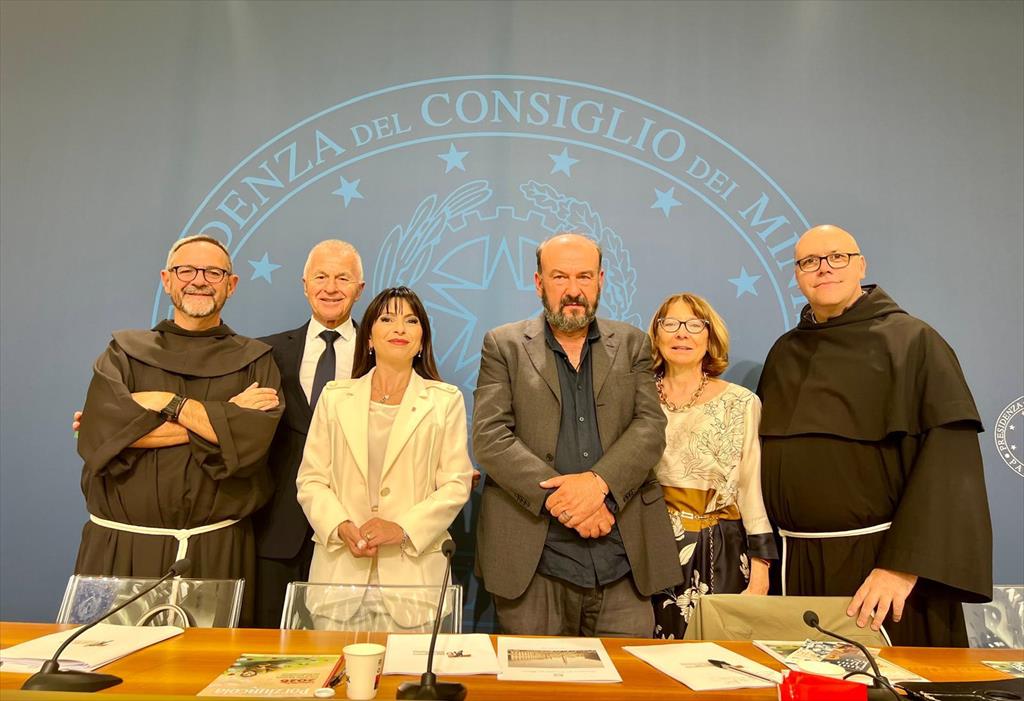 Nella sala polifunzionale di Palazzo Chigi a Roma si è tenuta la conferenza stampa sul tema "San Francesco, un'esplosione di vita" per la presentazione del programma delle iniziative e degli eventi approvato dal Comitato per le Celebrazioni degli ottocento anni della morte di San Francesco d'Assisi. Dopo l'intervento del sottosegretario alla Presidenza del Consiglio Alfredo Mantovano che ha accennato alla recente approvazione della legge che istituisce il 4 ottobre festa nazionale, ha preso la parola la presidente della Regione Stefania Proietti che ha espresso un "sentimento di gratitudine sincero e commosso per il riconoscimento unanime, tante volte chiesto e desiderato, a un santo che è di tutti per i valori comuni e fondativi che rappresenta come la pace, la fraternità, il dialogo, l'amore per i deboli e gli oppressi, la custodia del creato, la giustizia sociale". "L'approvazione del provvedimento da parte delle forze politiche all'unanimità segna un passaggio fondamentale: tutto il popolo italiano si riconosce nei grandi valori francescani oggi più che mai attuali e urgenti. La Regione Umbria, terra francescana - ha aggiunto la presidente - farà la sua parte in questo passaggio con la storia non solo partecipando attivamente alle attività del Comitato nazionale ma anche nella stesura di una legge che, sulla base degli ideali francescani e contribuendo alle celebrazioni del 2026, si pone l'obiettivo di rendere alcune scelte generative come l'attenzione ai giovani, la sanità per i più fragili, la cultura e la bellezza accessibili a tutti, l'accoglienza la fraternità il dialogo e la pace, che sono il codice etico e quasi genetico degli assisani, degli umbri e degli italiani. Ora siamo noi che dobbiamo avere il coraggio di rendere concreti i valori francescani nelle azioni e nelle scelte politiche". Alla conferenza - riferisce una nota della Regione Umbria - hanno partecipato il presidente del Comitato Davide Rondoni, il sindaco di Assisi Valter Stoppini, il vescovo Domenico Sorrentino, il custode del Sacro Convento fra Marco Moroni e il ministro provinciale dei minori Francesco Piloni.