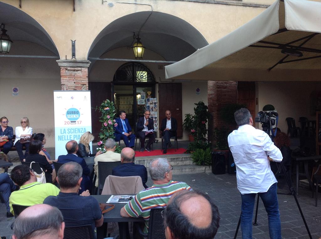 Prosegue il cartellone di "Gubbio scienza", la manifestazione dedicata al tema delle micro energie di scena a Gubbio fino a domenica prossim. E mentre proseguono i laboratori per i più piccoli e gli echi it nelle piazze del centro storico, non mancano anche i momenti di confronto e approfondimento come quello di ieri sera in piazza Oderisi tra i più attesi: era di scena infatti il Caffè' scientifico tra il sottosegretario agli Interni, Giampiero Bocci e l'amministratore delegato di Colacem, nonché presidente onorario della Fondazione Carisp Perugia, Carlo Colaiacovo. Al centro il tema delle "citta' intelligenti", moderato dal giornalista del "Messaggero" Italo Carmignani.